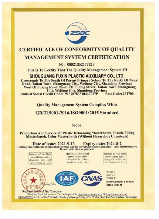 寿光市富鑫塑胶助剂有限公司是消泡母料、色母料、填充母料、PE蜡、石蜡、高压已烯颗粒、建筑胶粉、防水卷材等产品专业生产加工的公司,拥有完整、科学的质量管理体系。寿光市富鑫塑胶助剂有限公司的诚信、实力和产...