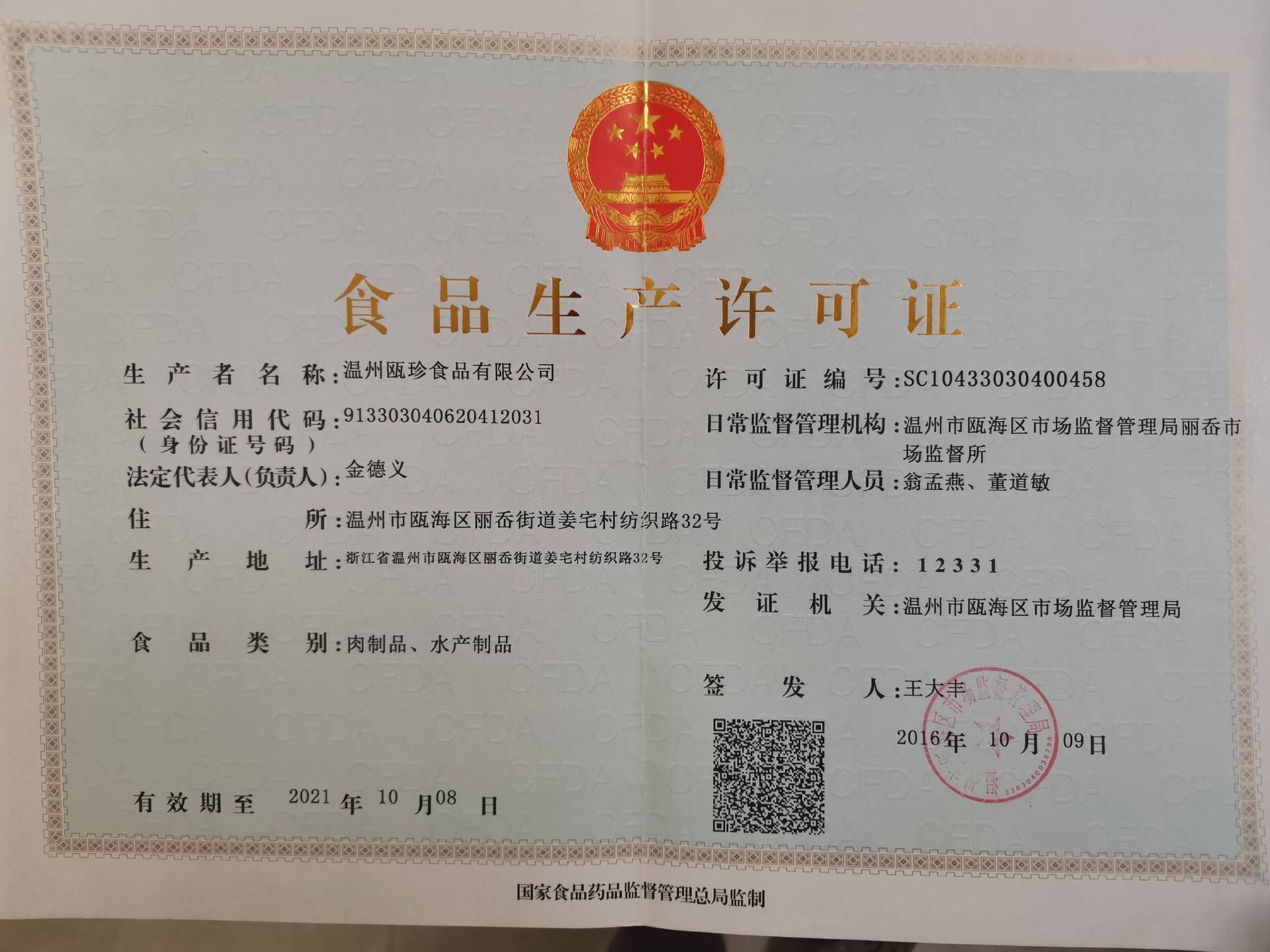 温州瓯珍食品有限公司