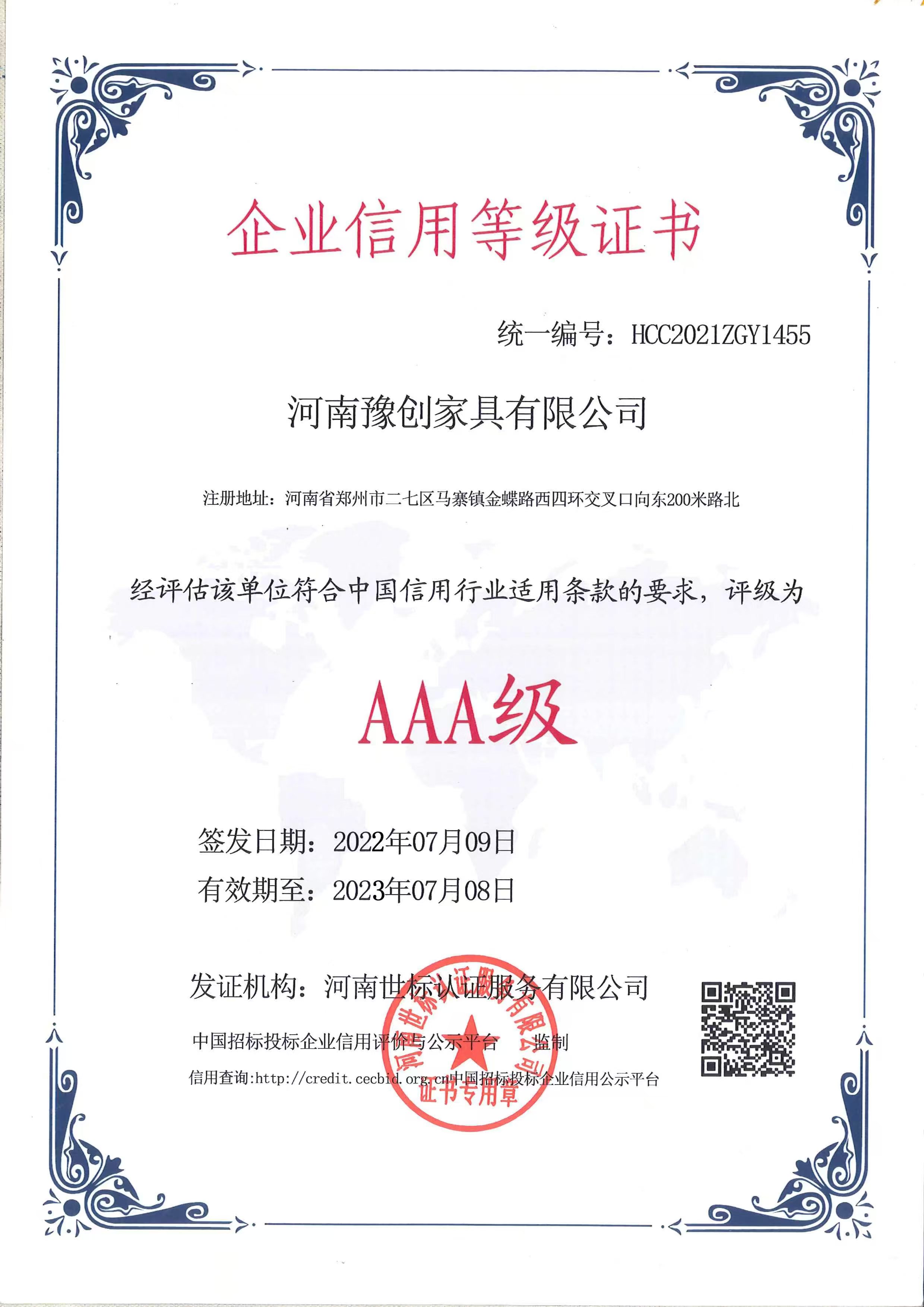 AAA诚信等级