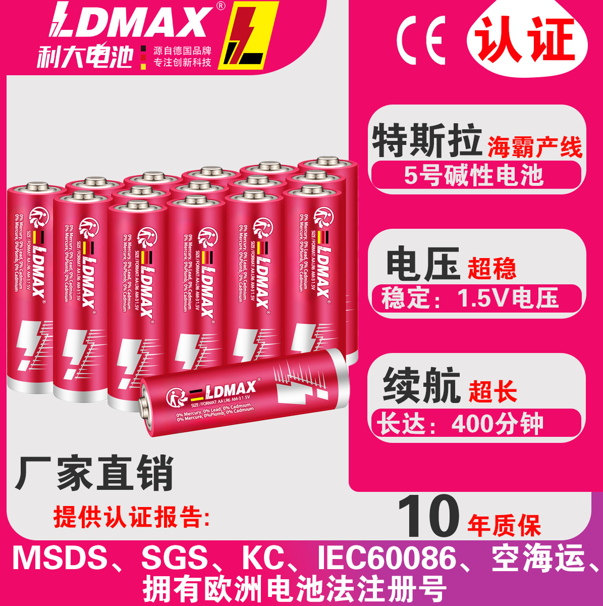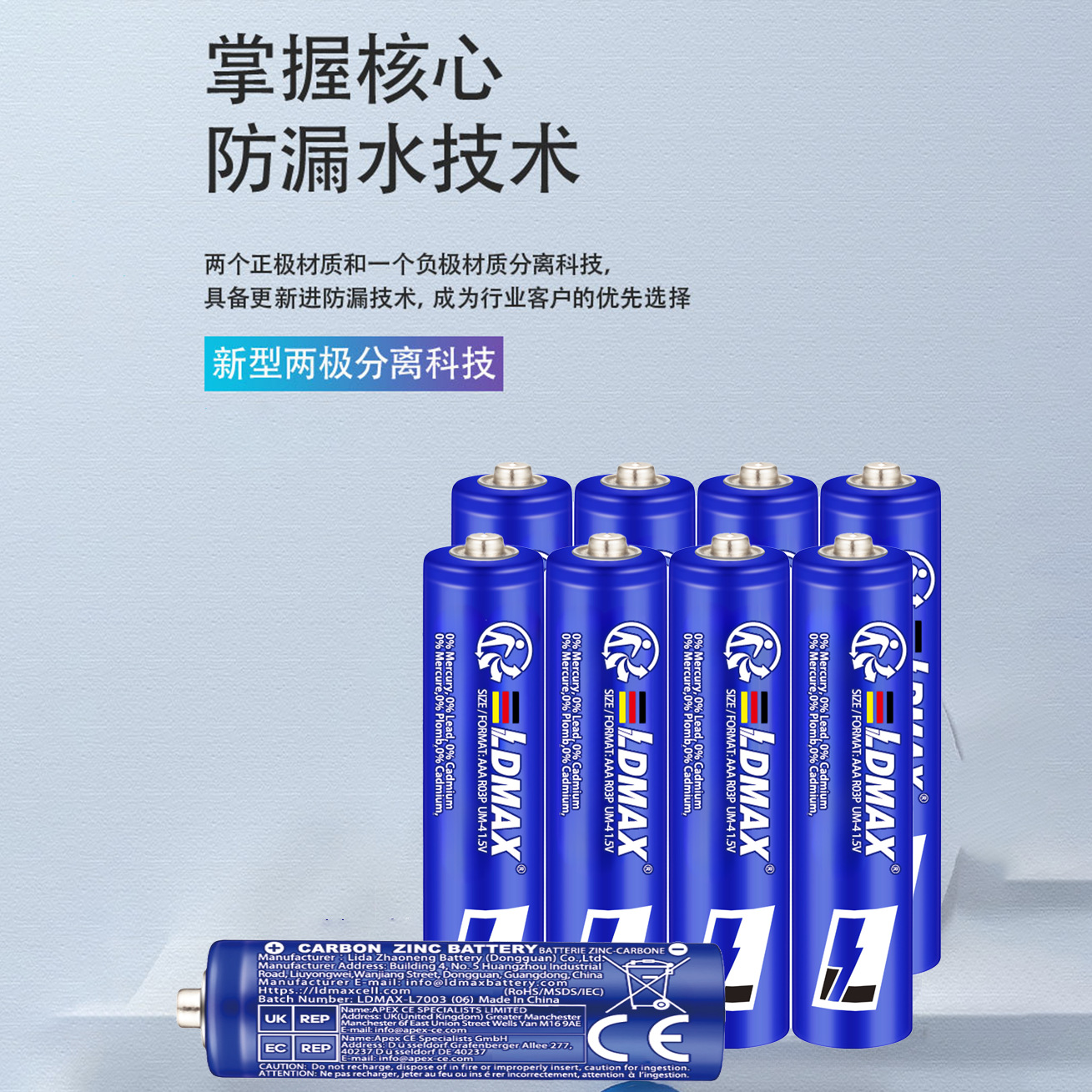 利大兆能电池 (东莞) 有限公司是一家专业以研发、生产、销售电池及相关产品为一体的高科技电池企业,并以 LDMAX 德国注册品牌在全球范围内销售。产品主要涵盖了碱性电池、碳性电池、钮扣电池、磷酸铁锂电...