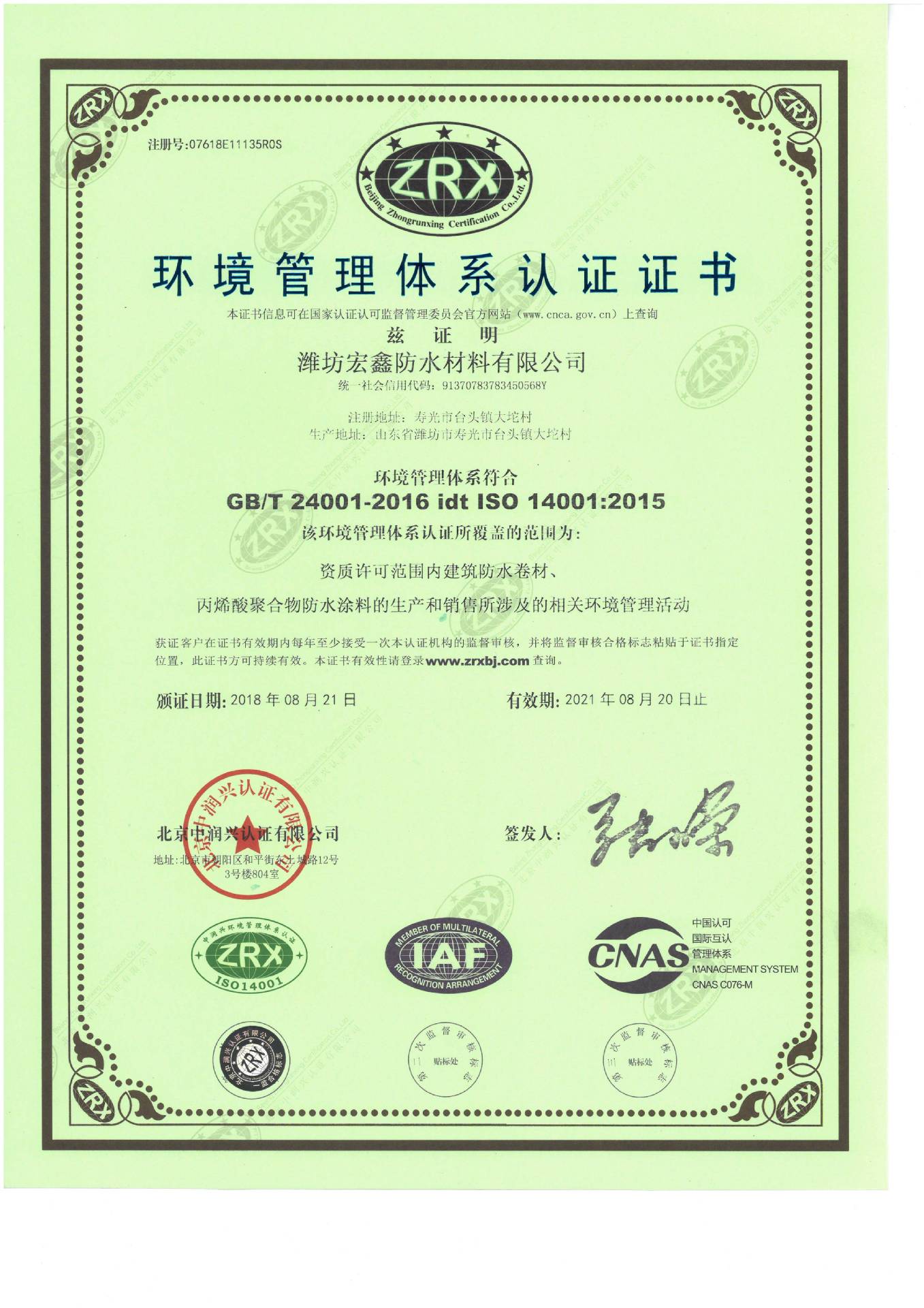 潍坊宏鑫防水材料有限公司