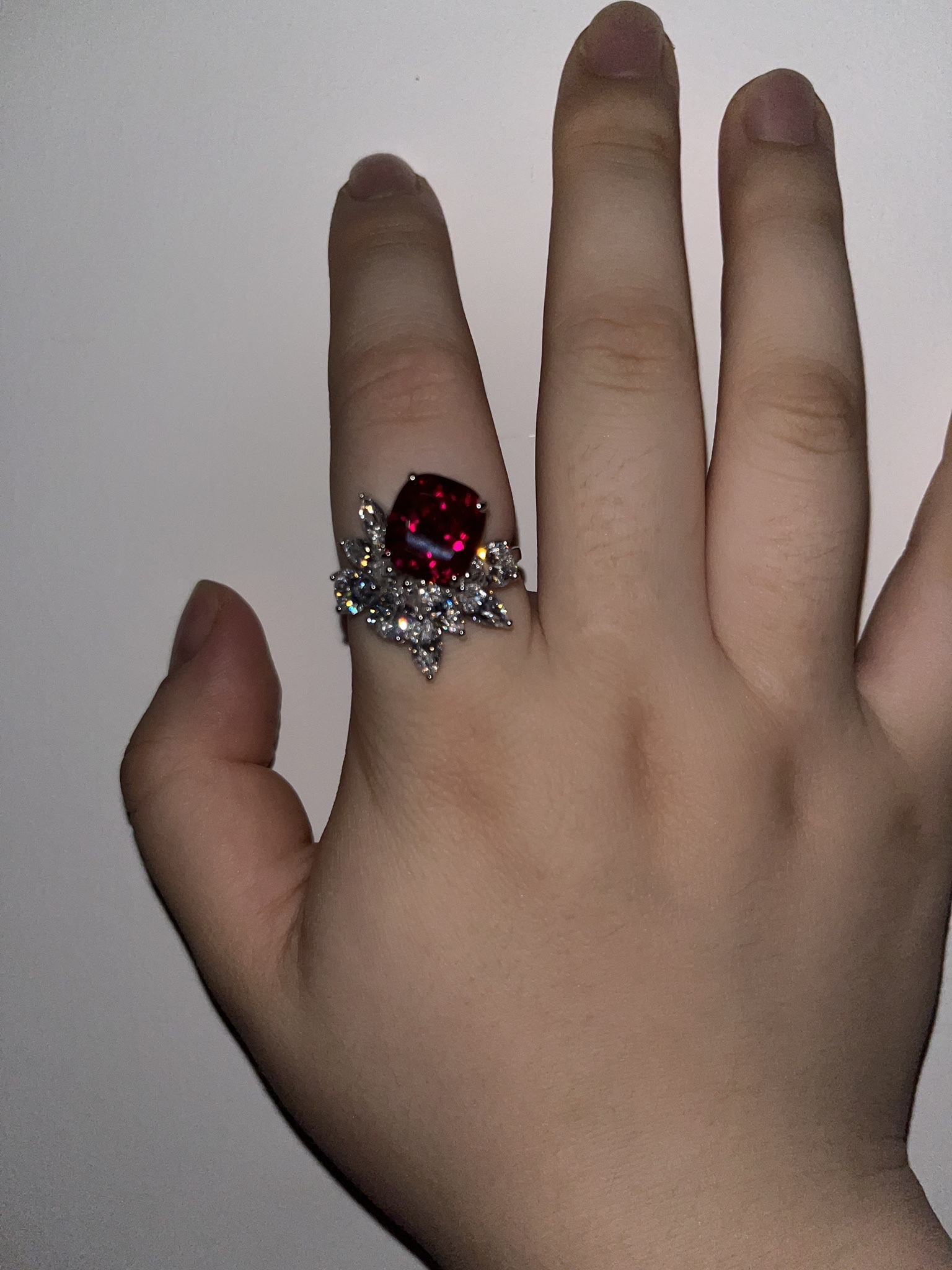 宝石干净闪亮,戴着舒服,戒指造型设计像斗鱼尾巴一样漂亮,非常喜欢!2025.8.28