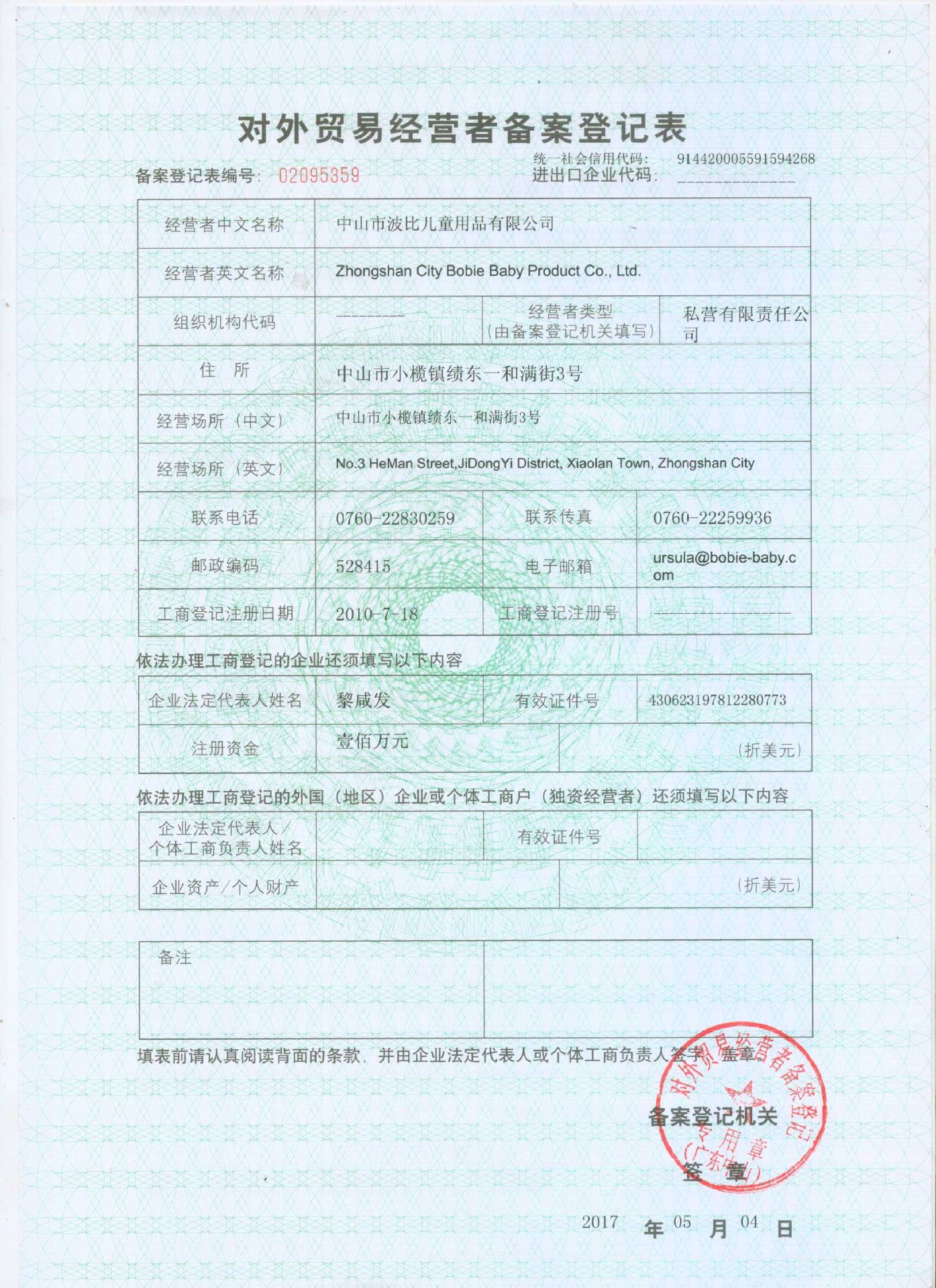 中山市波比儿童用品有限公司
