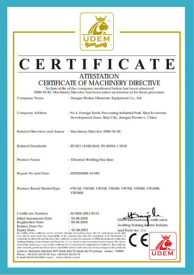 江苏威拓超声波设备有限公司是一家专业生产塑料焊接设备的高新技术企业!线性振动摩擦焊接机,红外线振动摩擦焊接机,是公司的主打拳头产品,热铆焊接机,热板焊接机,多头非标型超声波塑料焊接机,以及非标准设备、...