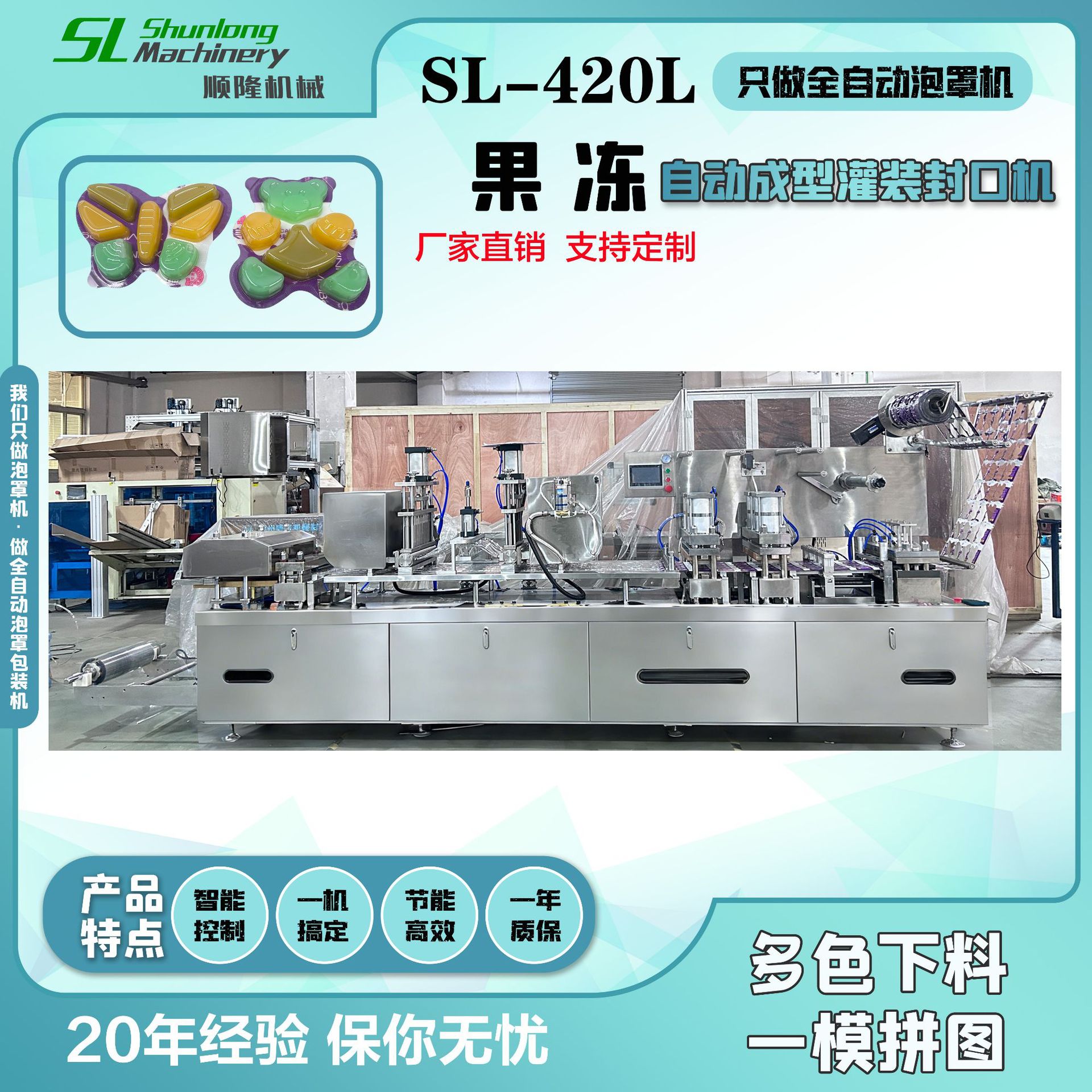温州顺隆机械科技有限公司,坐落于美丽的中国东南沿海城市浙江瑞安市是一家集研发设计、制造、销售、服务于一体的制造型企业。本厂专业生产全自动奇趣蛋泡罩包装机、眼球软糖泡罩包装机、全自动果冻泡罩包装机、糖玩...