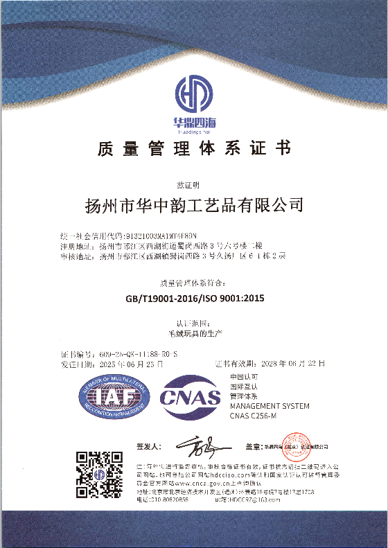 扬州市华中韵工艺品有限公司,我们是一家集生产,开发为一体的专业毛绒玩具定制供应商。其中绝大多数一线员工拥有毛绒玩具生产10年以上的经验。公司各种配套齐全,工艺先进,管理完善,品质优良,价格合理,开发快...