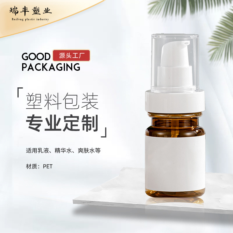 瑞丰塑业是一家优良的化妆品包装材料制造商,拥有近10年的研发与制造经验。为全球客户提供多样有个性且高品质化妆品包装容器。我们专业生产PET瓶,已成功研发出一系列不同风格的产品,保存了玻璃所具有的透明度...