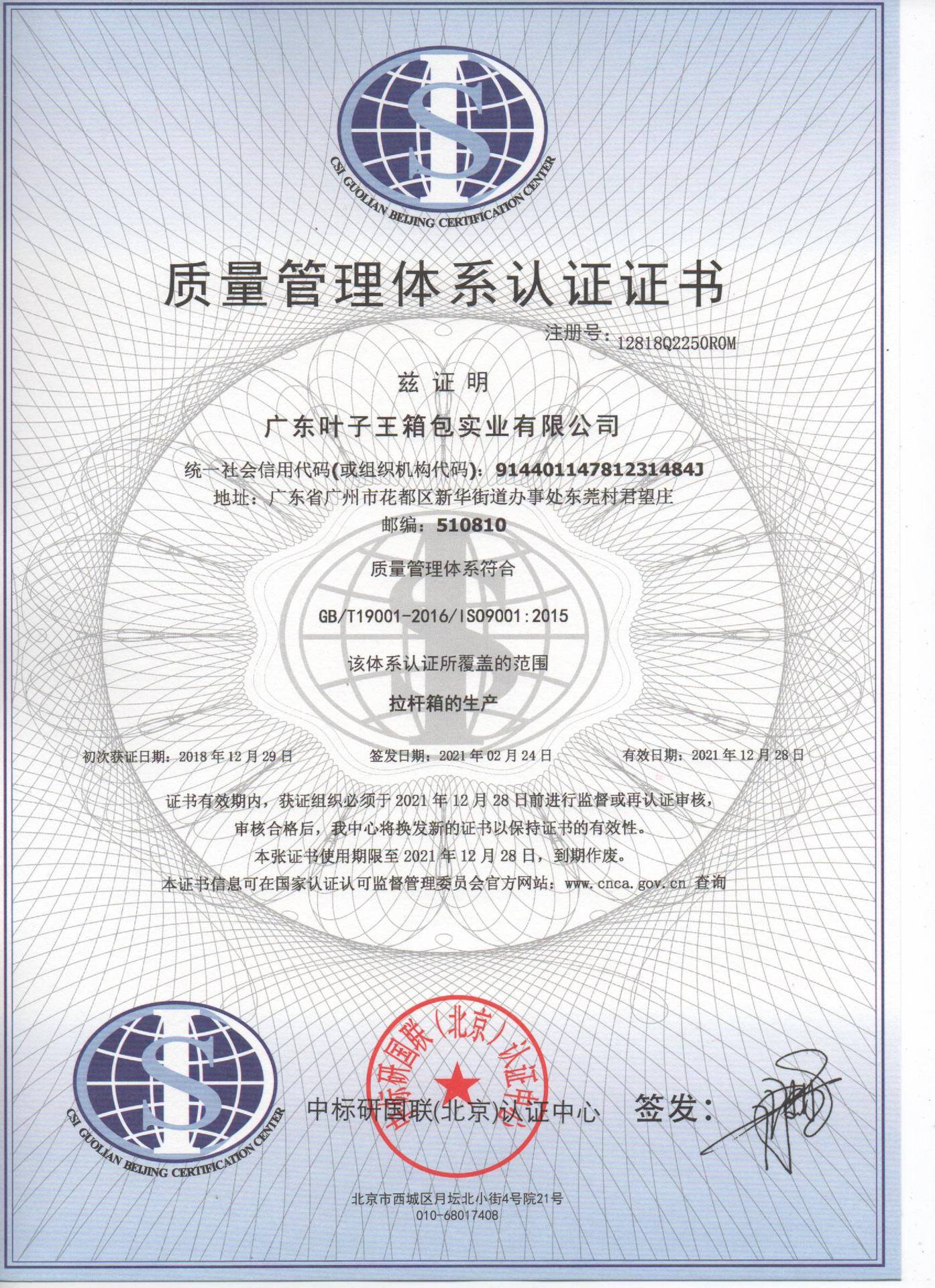 广东叶子王箱包实业有限公司