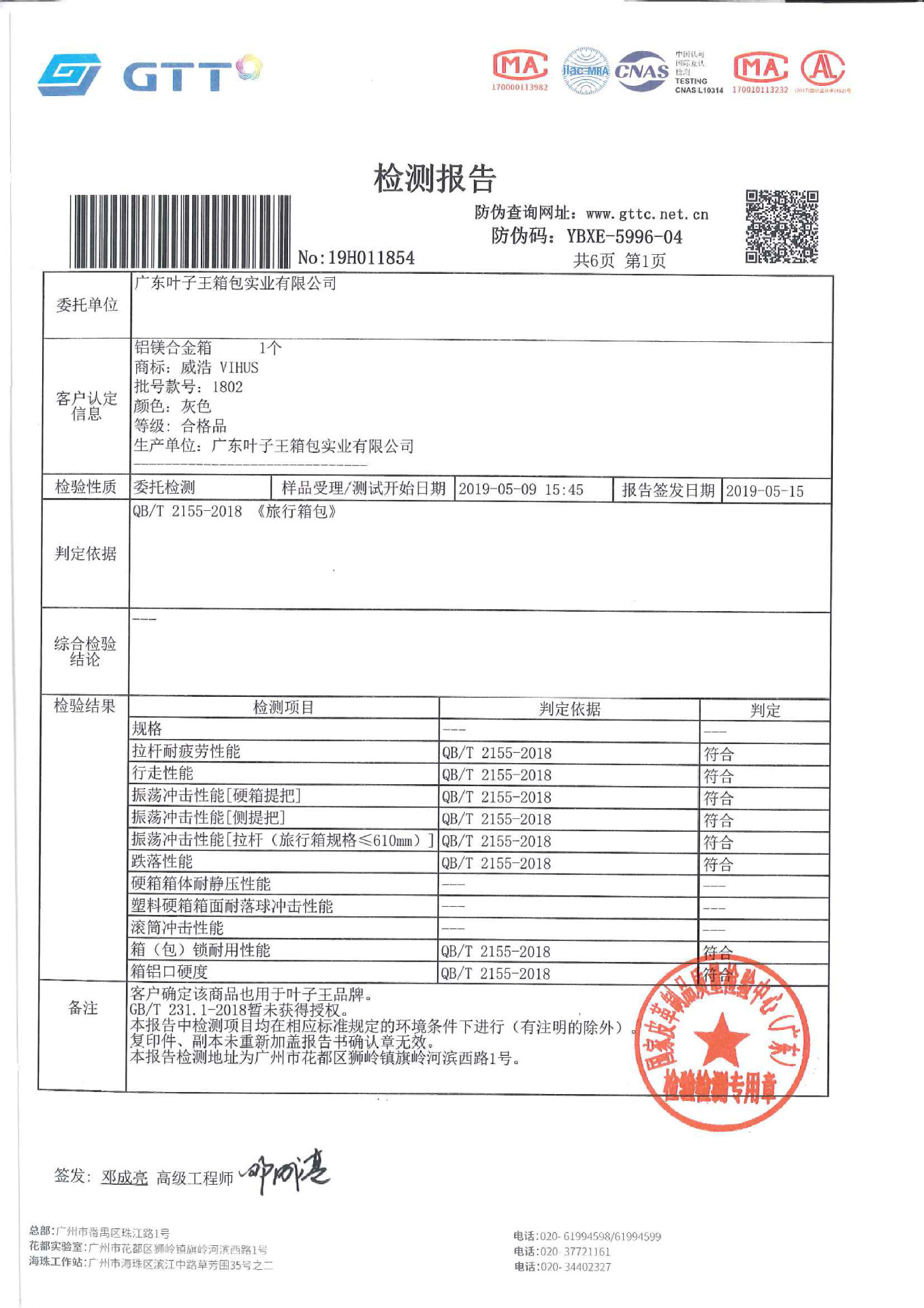 已通过INTERTEK机构认证