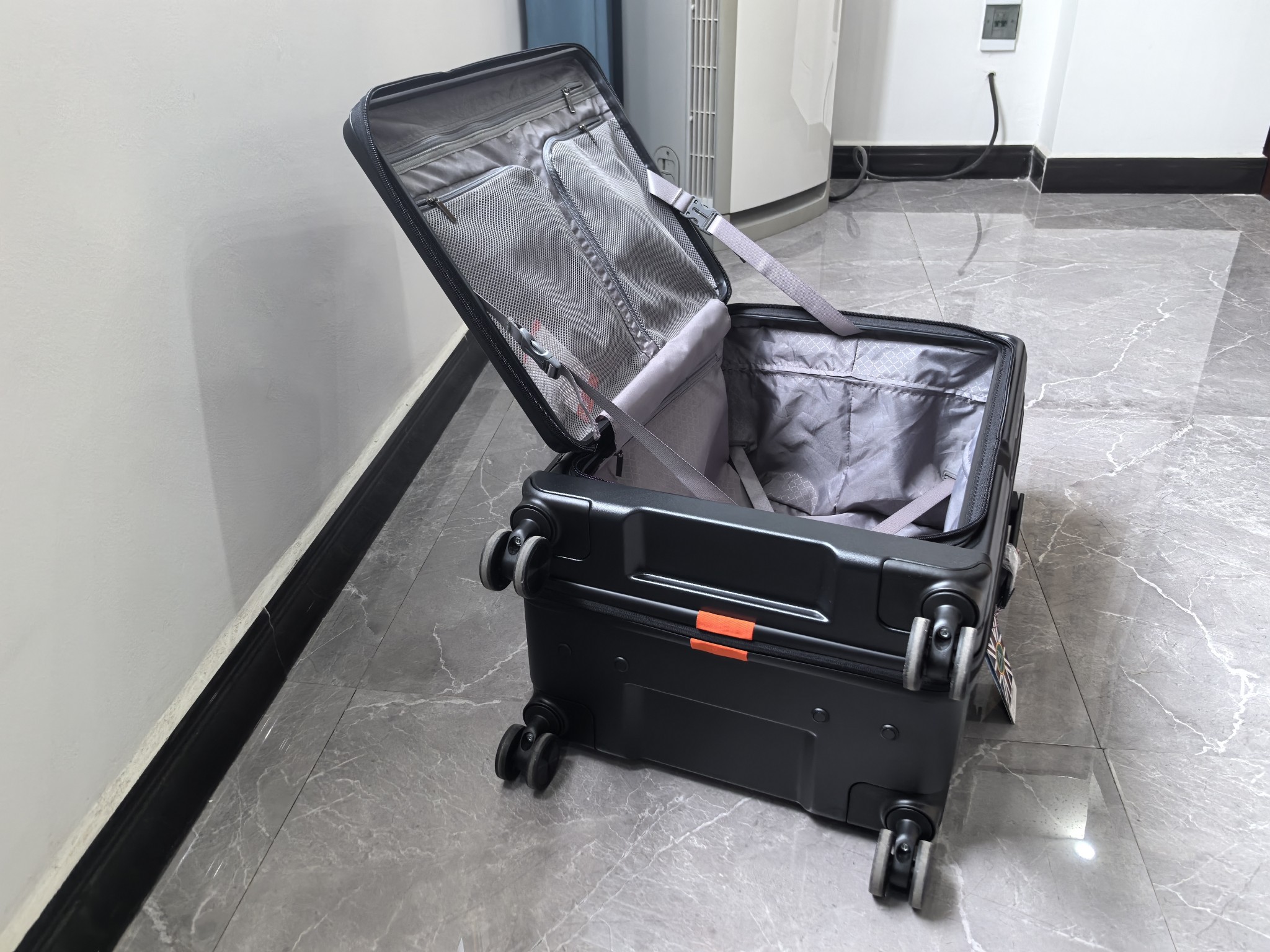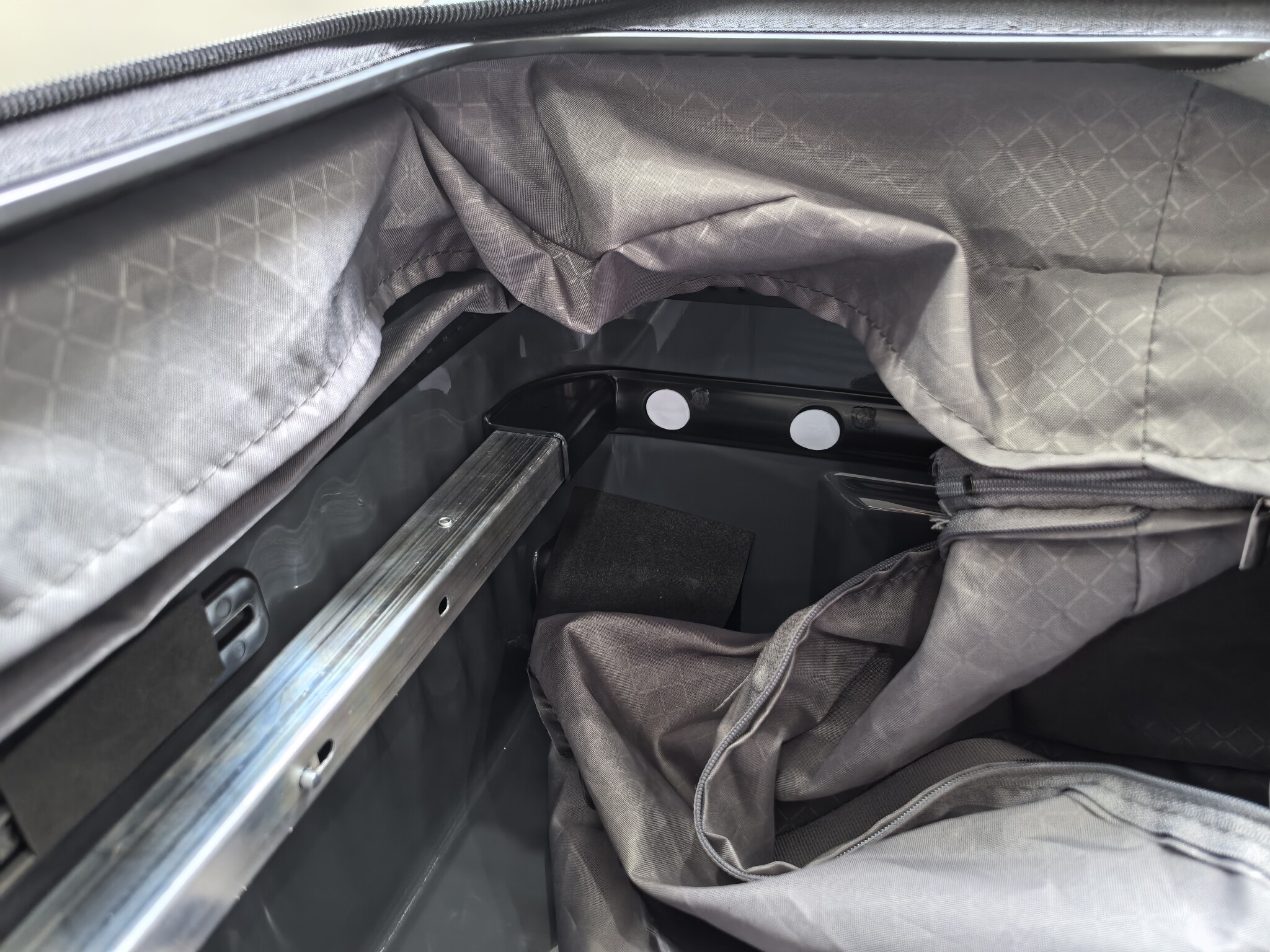 性价比特高 1.材质软硬适中,设计感拉满,商务风十足。内衬布料美观结实,轮子材质软软的静音效果不错,螺丝也做了防划措施.防尘罩也挺厚实。 2.美中不足拉杆没有和箱底做一个很好的受力结构,并且与箱体是分离的,等我上个结构胶粘住就完美了。另外拉链收口确实挺丑,用的热熔胶有点掉档。魔术贴长短不一致也希望能改进。 3.不黑不吹总体来讲是满意的,相片展示的是线上看不到的地方,方便参考。小慧下次记得包邮。2024.12.27