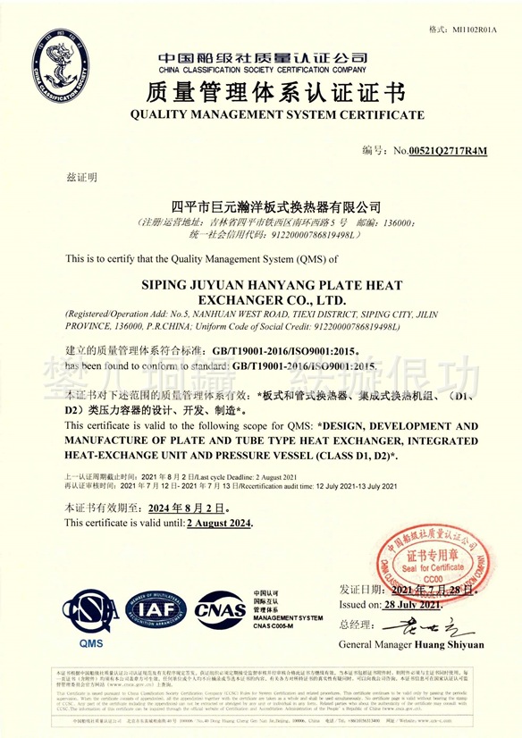 四平市巨元瀚洋板式换热器有限公司