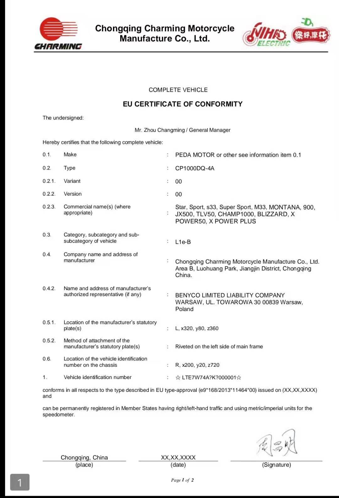 AGROMASHTREYD LLCPEDA 欧盟认证证书,生产peda摩托