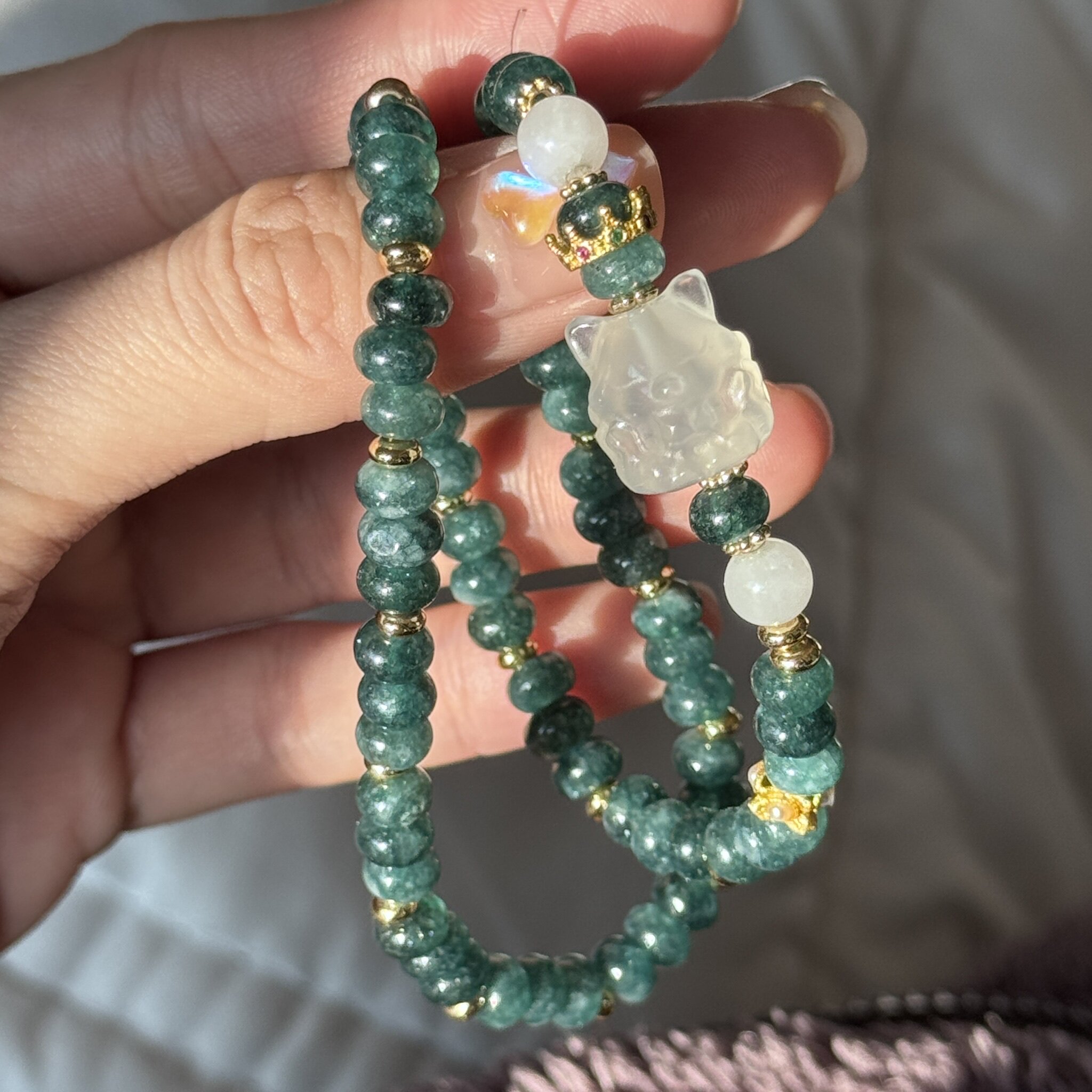 价格不贵,值得下手绝美才20块我同事以为至少一百多,不是廉价的绿,我买过很多串,带着玩玩没问题。秀气精致感十足,真的推荐 很少买东西拍这么多张买家秀,确实东西不错我很喜欢,希望能给姐们一个参考!2025.2.15