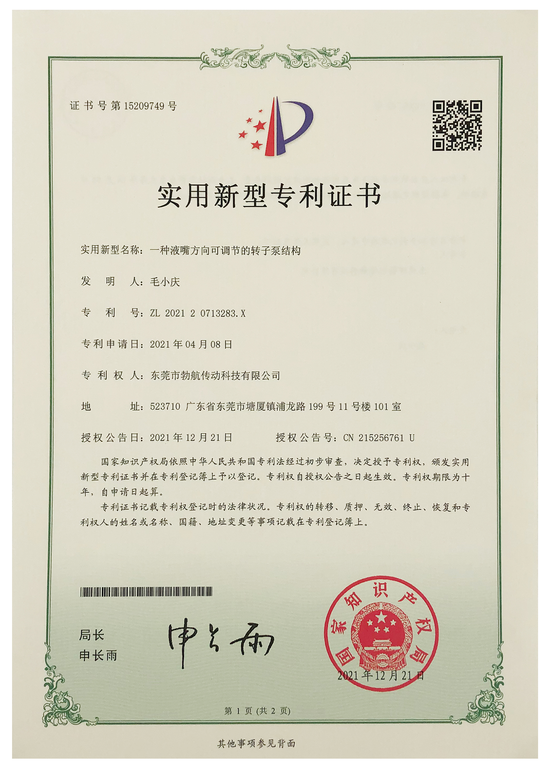 一种液嘴方向可调节的转子泵结构CN215256761U