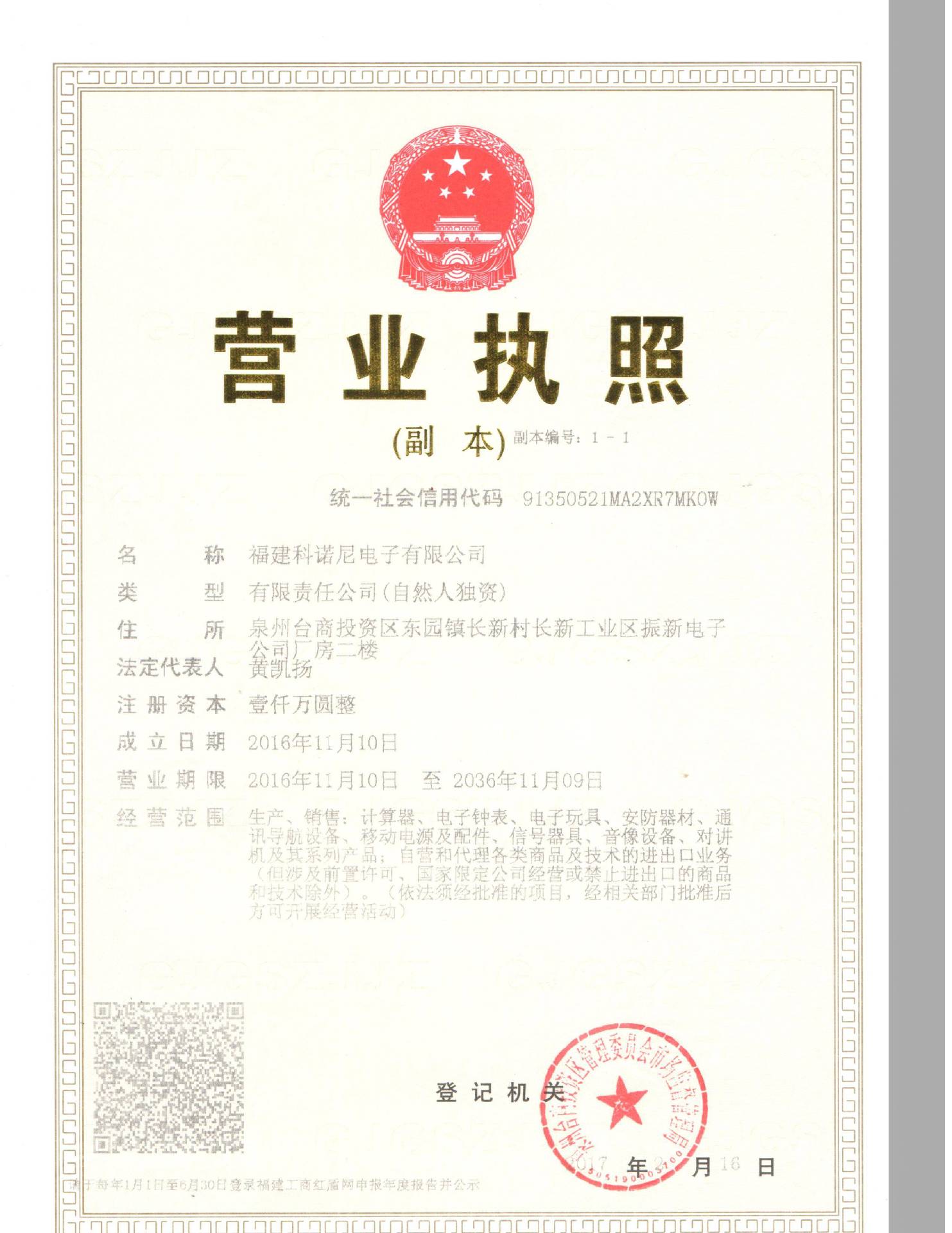福建科诺尼电子有限公司