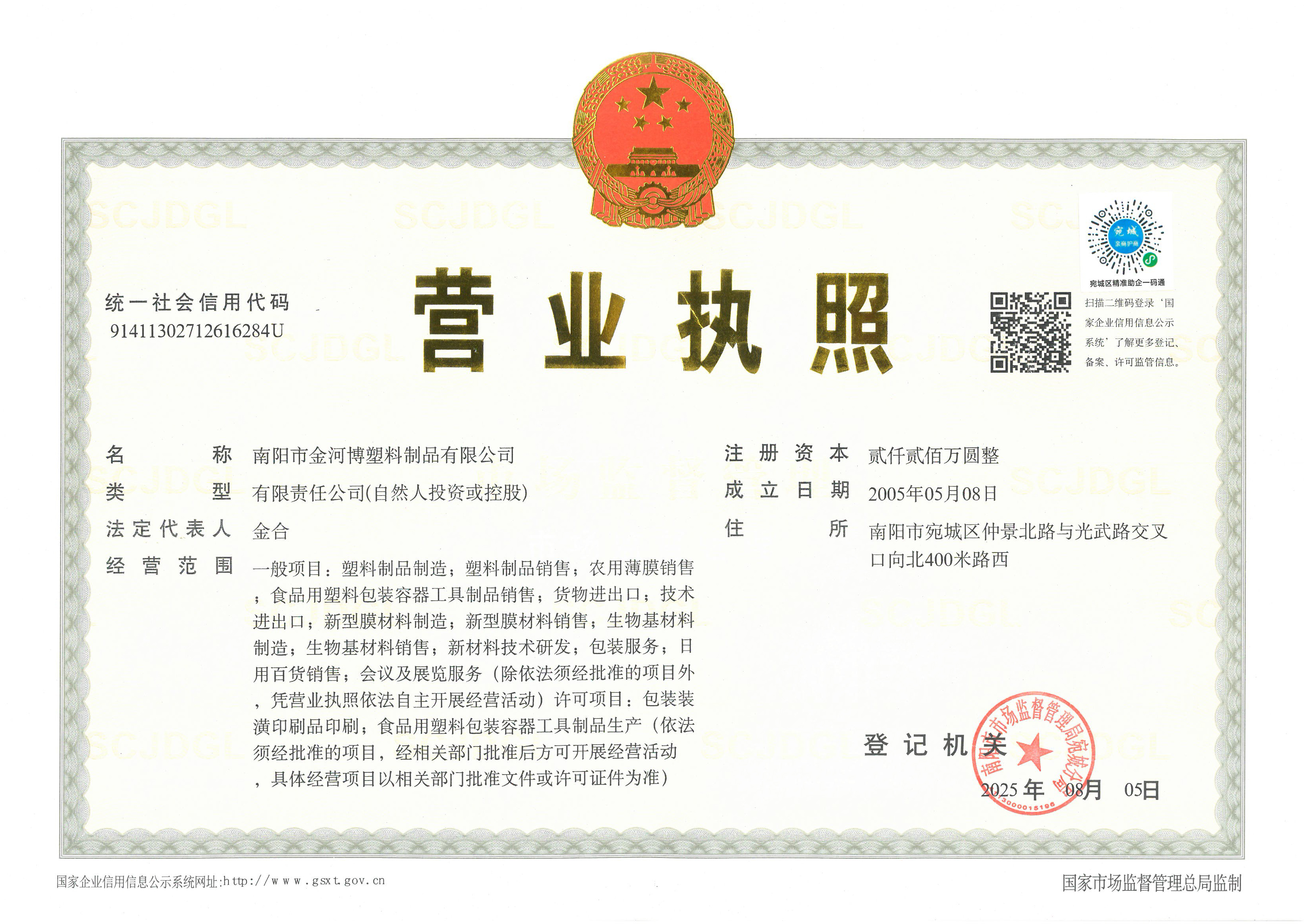 南阳市金河博塑料制品有限公司