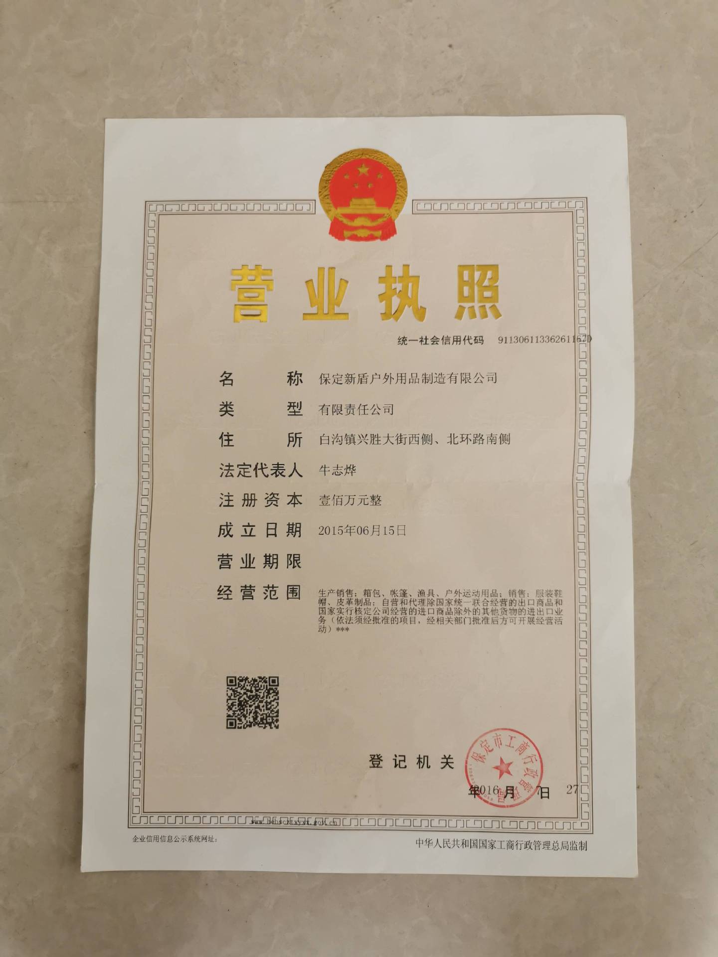 保定新盾户外用品制造有限公司