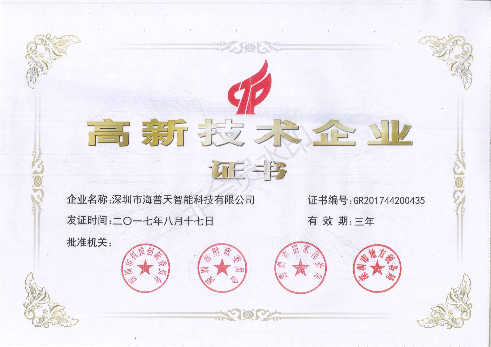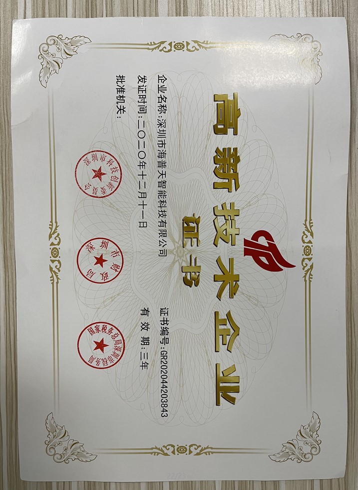 深圳市海普天智能科技有限公司,位于深圳市光明区,是一家拥有研发与生产能力的高新企业,工厂占地面积10000平米以上,公司现有员工近200人,其中研发与技术人员50余人,荣获《国家高新》《I...