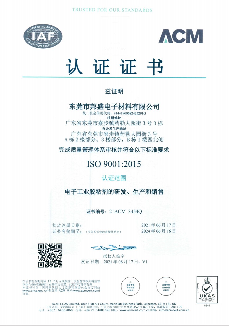 东莞市邦盛电子材料有限公司是一家专业从事环氧树脂胶粘剂研发、生产、销售为一体的企业。致力于环氧系列胶粘制品的研究和运用,引进先进技术、先进仪器设备和专业的技术管理人才,同时与国内的研究院及大学开展合作...