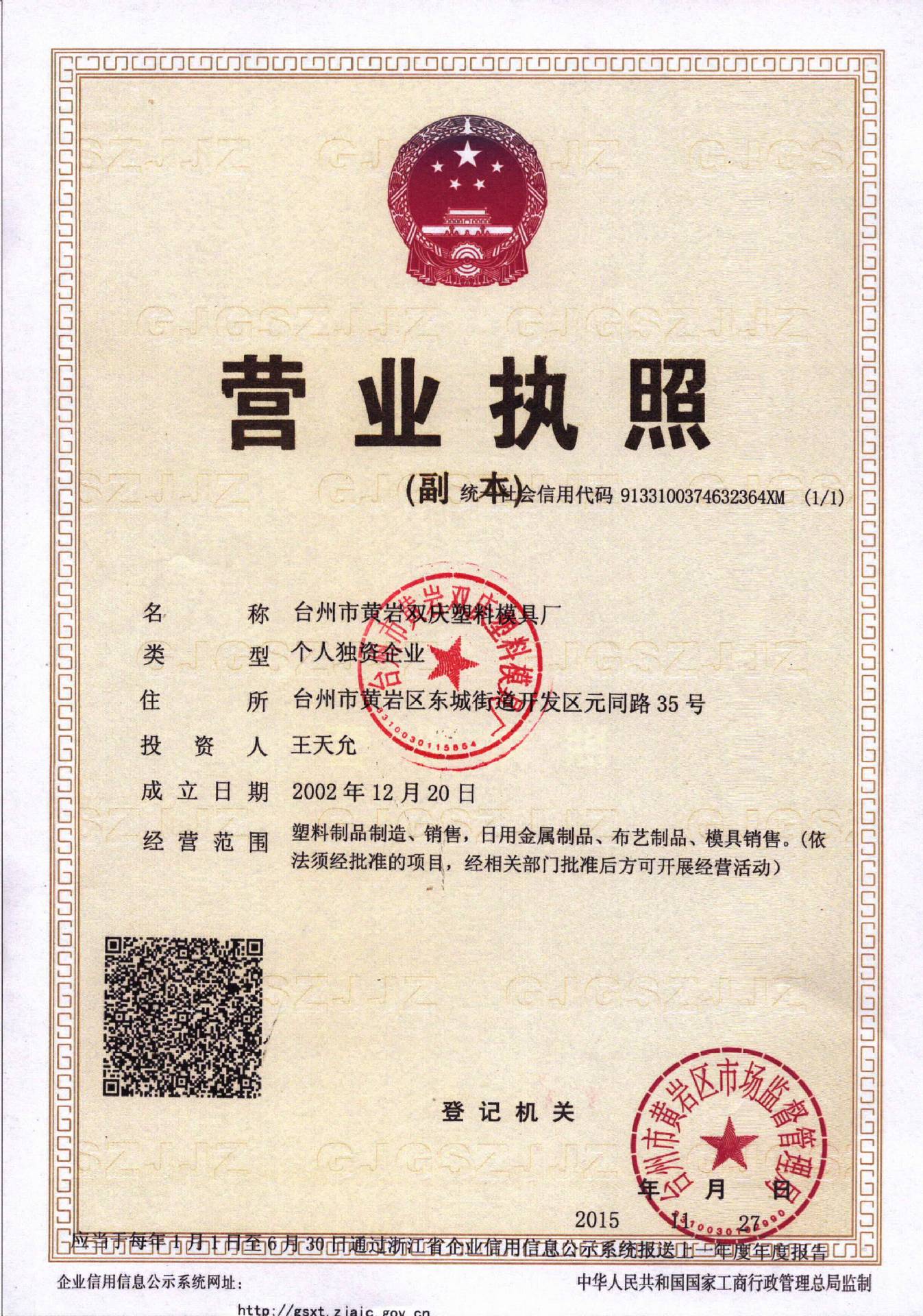 台州市黄岩双庆塑料模具厂