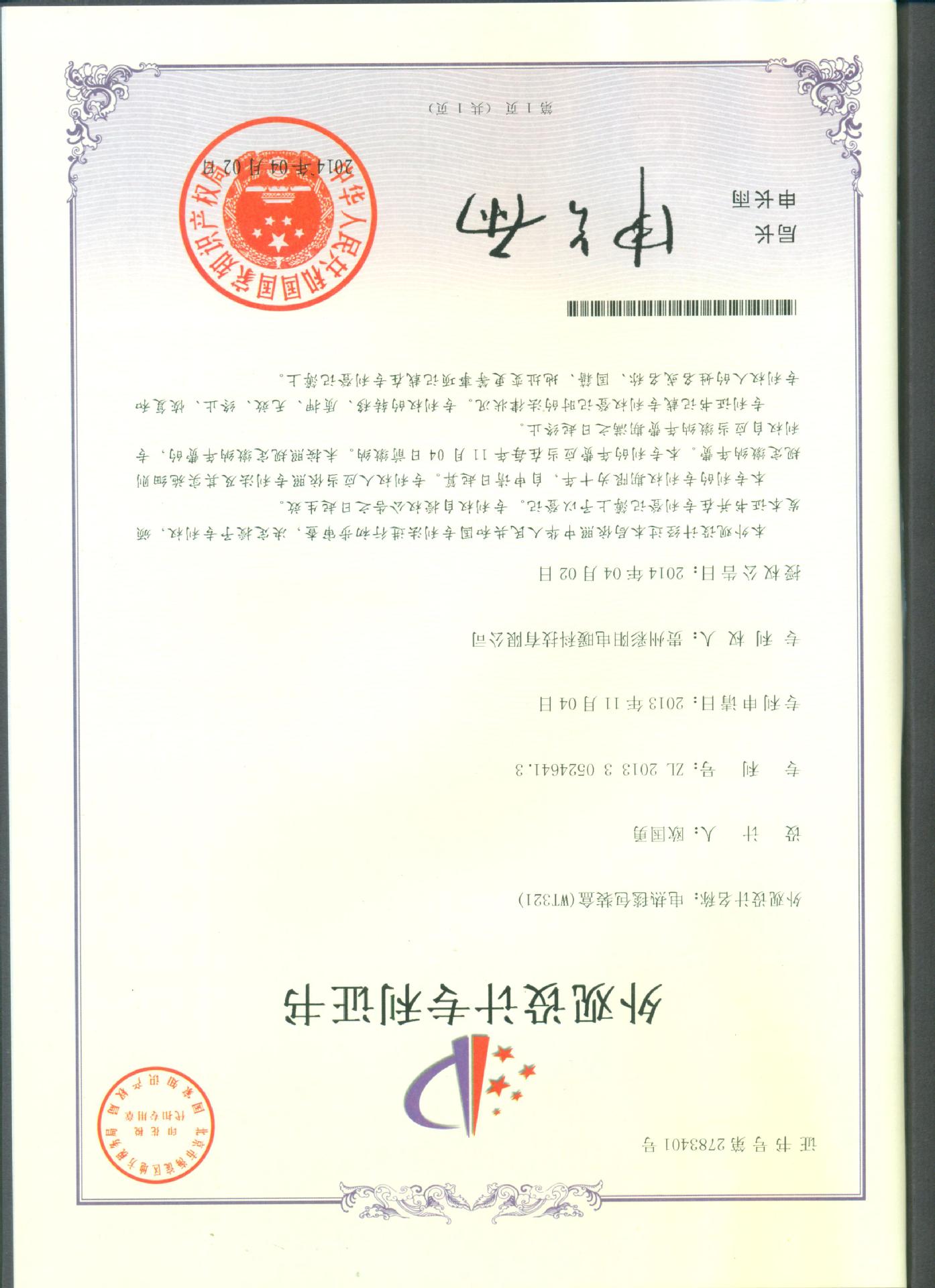 持有专利证书