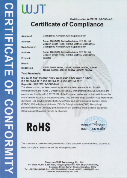 拥有RoHS认证