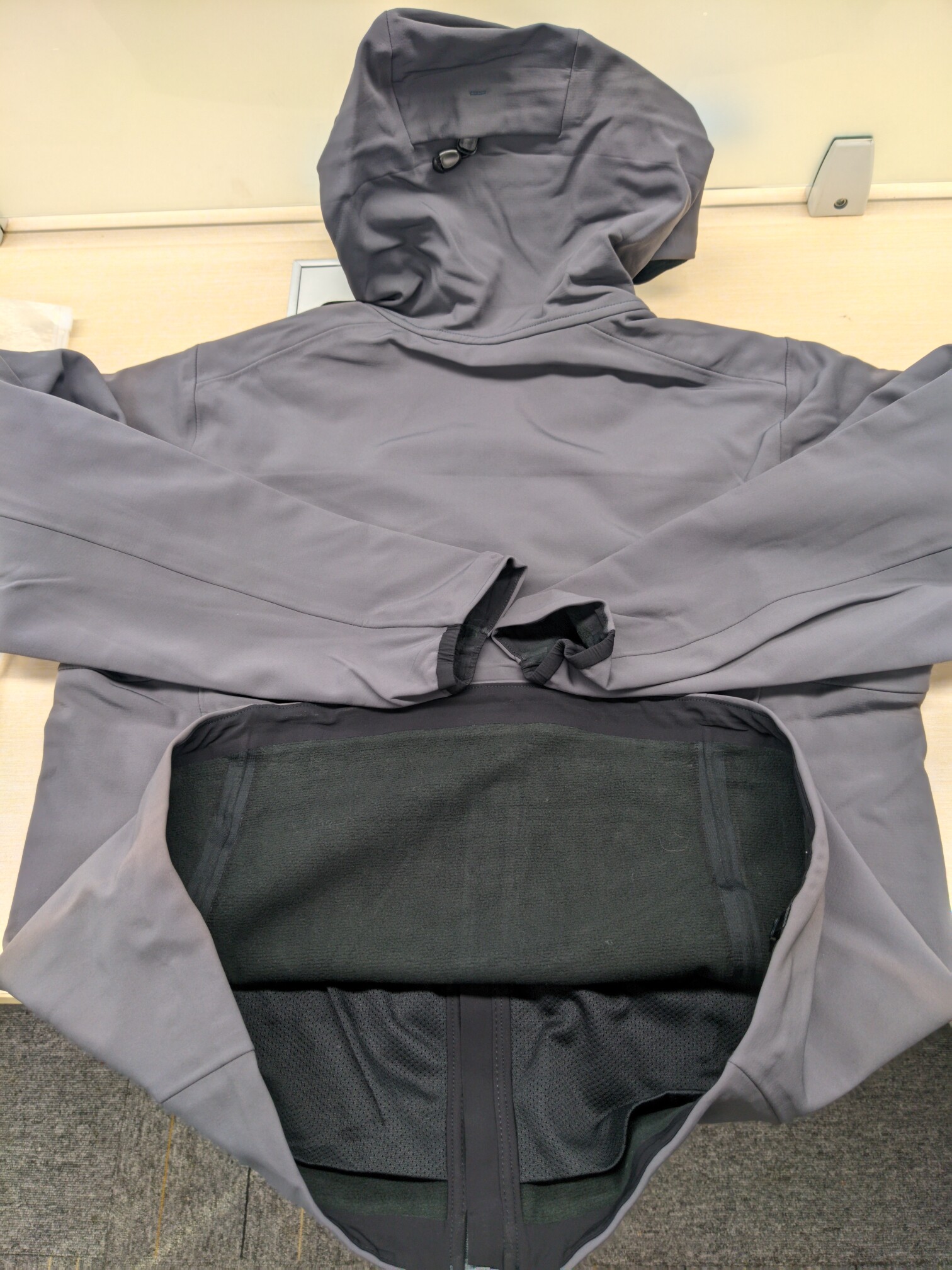 复购评价:1.韵达物流:2024年12月18日晨下单,韵达当晚从浙江省台州市三门县发出,12月20日中午到手,历时2天;2.包装:透明塑料衣袋较厚实;3.设计:Gamma MX Hoody同款,不可拆卸可调节风帽(帽领一体,抽绳隐藏于衣领之内,更显商务风),前胸2个隐藏式拉链口袋+2个斜插拉链口袋;拉链锁头在右侧;4.配件:风帽2向可调节抽绳扣+半松紧带防风袖口+左右下摆各1个可调节防风抽绳/按扣+带YYK标识拉链(均为单头);5.材质:面料100%尼龙(洗标成分标为大身84%尼龙+16%氨纶与原版一致,但实际并无氨纶成分)+三层压胶,面料轻且耐磨。里料100%聚酯纤维,网布+横波纹完美还原原版;6.版型:软壳王者毋须多言,穿感柔软舒适,贴合内层衣物且不会发生相对摩擦;7.做工:接缝压胶(客服建议只能手洗);8.尺码:美码,较国内码大1.5码,客服推荐准确(之前仓库发错了,发了隐秘灰/偏白,后换发了水波灰/深灰,感谢客服亚亚同学);9.总评:个人认为是帝翔在售的性价比最高的一款上衣,尼龙面料耐磨,商务/通勤/户外三季可穿,外穿/中间层两用、使用率高。2024.12.27