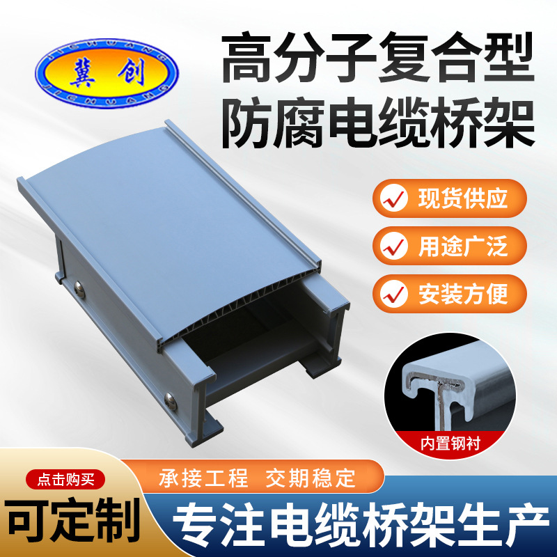 河北创业玻璃钢电器设备有限公司主营:玻璃钢桥架、玻璃钢电缆槽、金属线槽、铁路电缆槽、聚氨酯电缆桥架、玻璃钢管箱、玻璃钢电缆支架、钢制电缆桥架等。产品有聚氨酯复合电缆桥架(电缆管箱)、复合材料(SMC)...