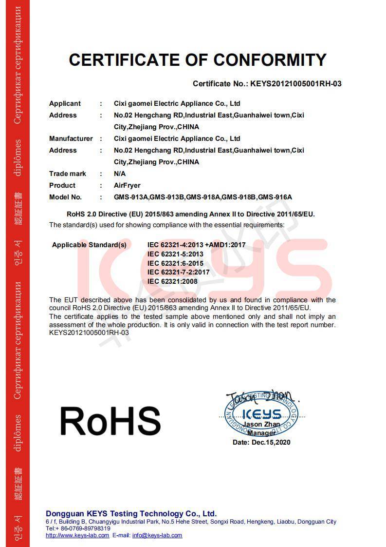 拥有RoHS认证