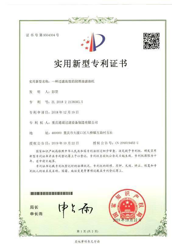 重庆通瑞过滤设备制造有限公司是一家集开发、研制、生产各种油过滤机、油再生装置、真空滤油机、净油装置的企业。本企业产品广泛用于电力、石油天然气、矿山、机械制造、钢铁、冶金、化工、铁路、造纸、制药、航空、...