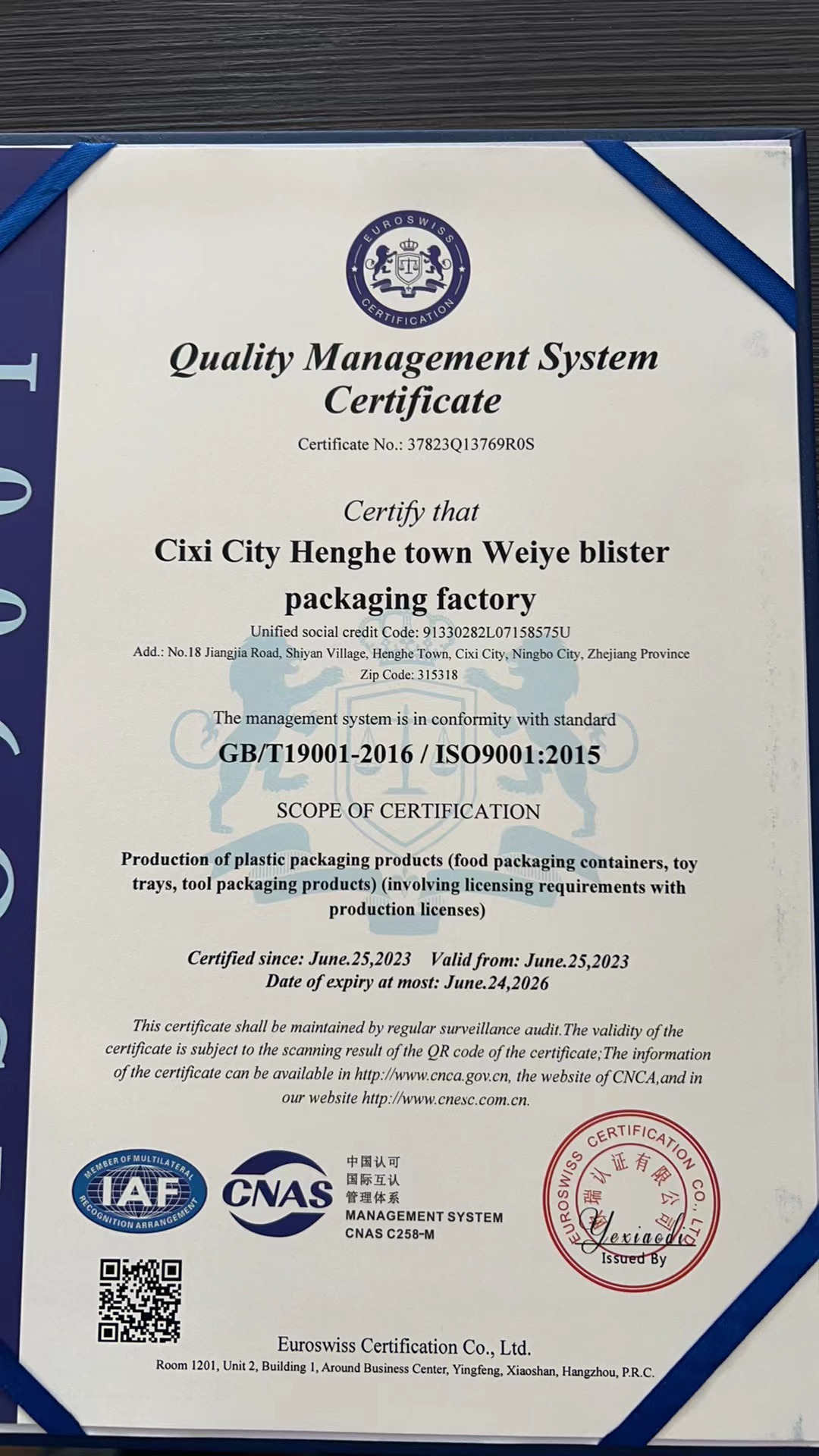 慈溪市伟业吸塑包装有限公司坐落在杭州湾跨海大桥南岸,东南紧靠宁波,西南与余姚接邻,北与上海隔海相望,地处沪、杭、甬经济金三角的中心地带。地理环境优越,交通便捷,,距宁波国际机场65KM,国际集装箱码头...