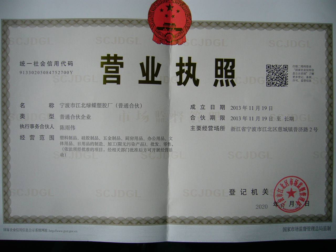 宁波市江北绿蝶塑胶厂(普通合伙)