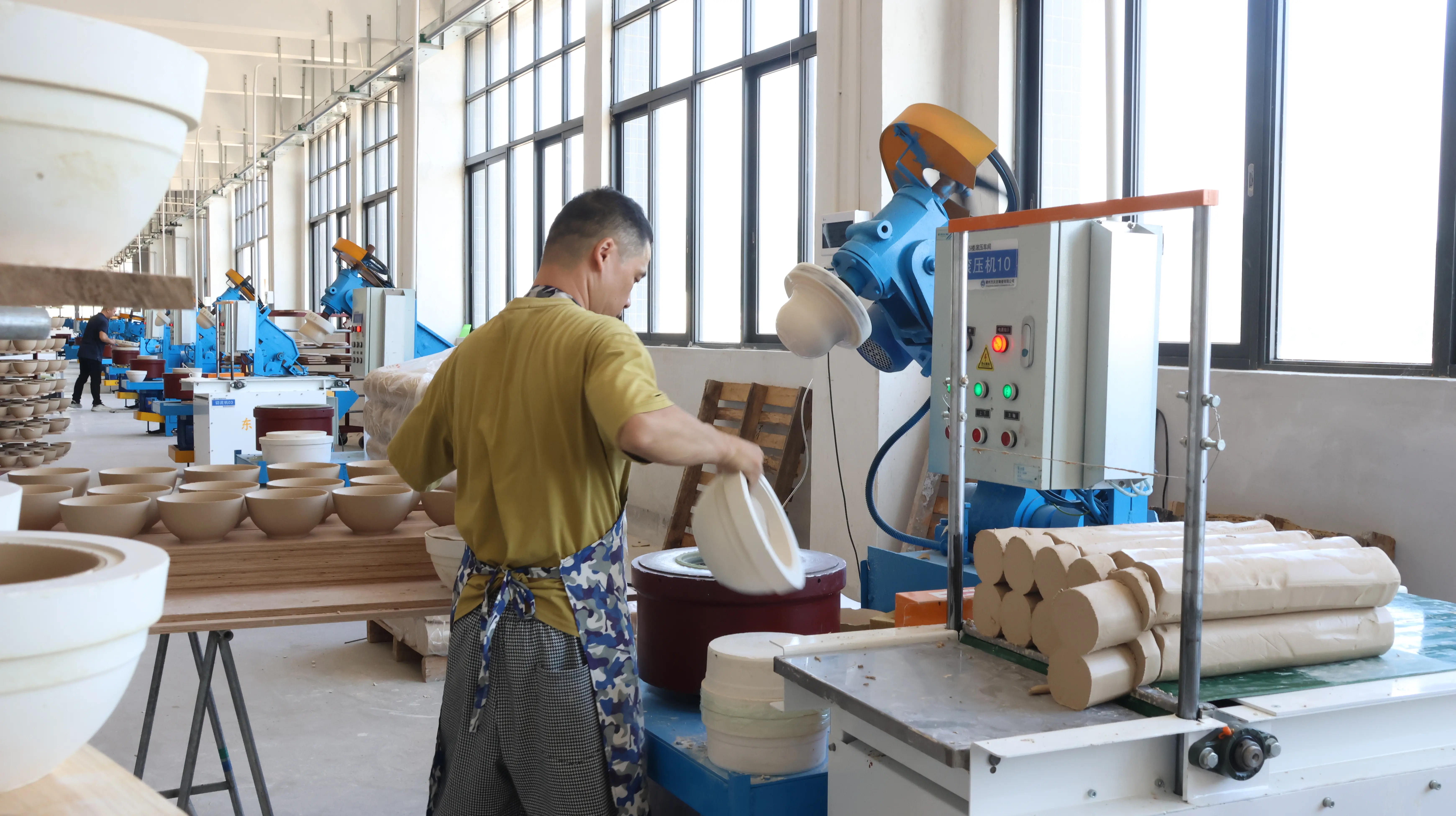 特殊工艺滚压成型 模具制作 安全包装 干燥 洗胚晒胚 筛选(包装) 喷绘上色 修补打磨 装窑/烧窑 土胚修胚/上釉 胚体制作 拆窑/打磨/包装 挤压膨化 原料配制/混合 喷油