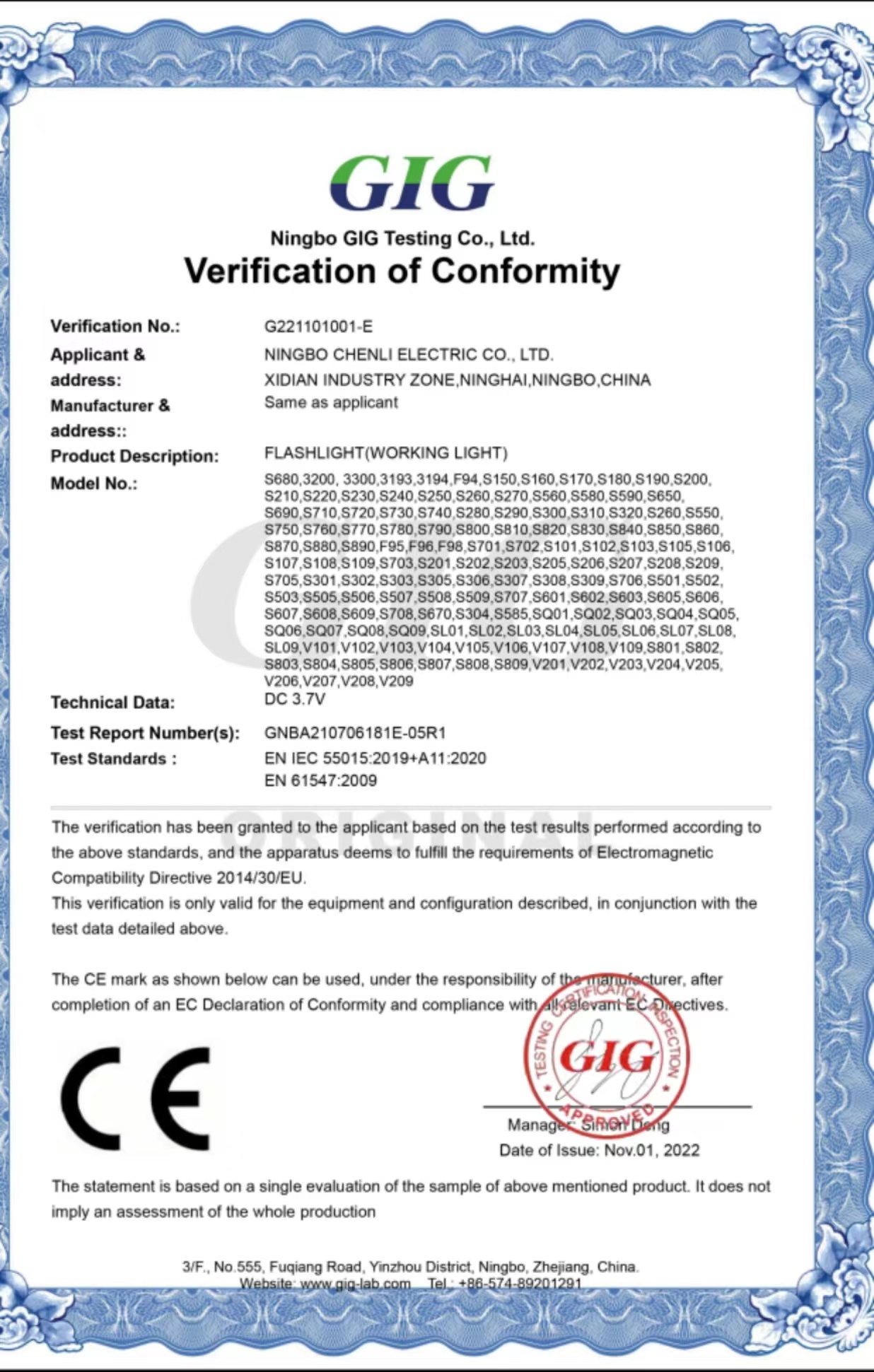 露营灯V101外观专利证书