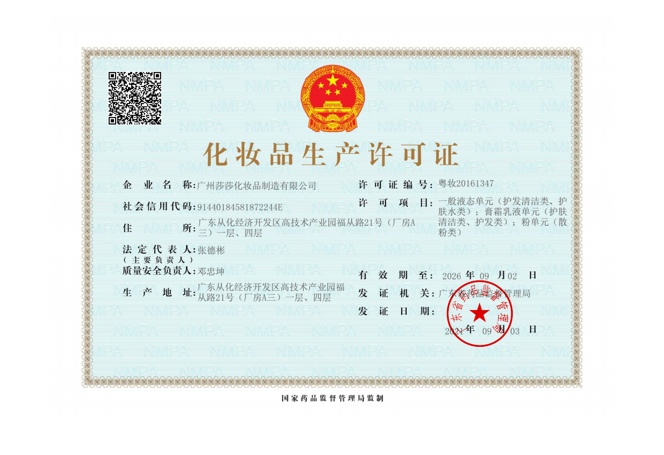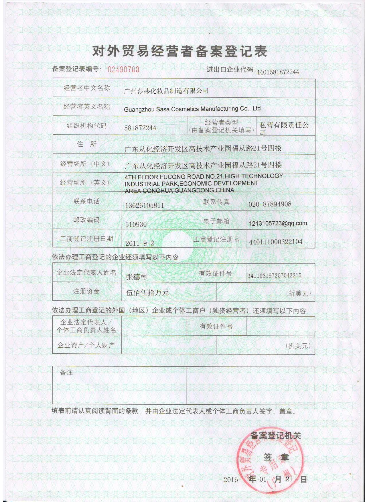 广州莎莎化妆品制造有限公司
