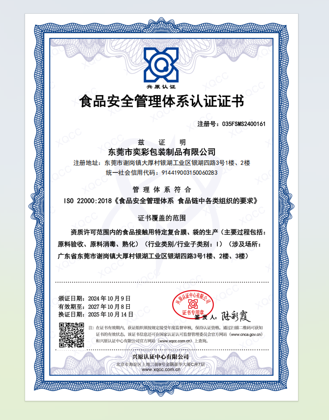 东莞市奕彩包装制品有限公司属私营企业,位于中国广东省东莞市谢岗镇银湖工业区银湖路,厂房面积超 8000平方米,拥有完善先进的复合包装制品机械设备,包括国内先进的电脑自动套色机器设备;八边封纸封袋机、自...