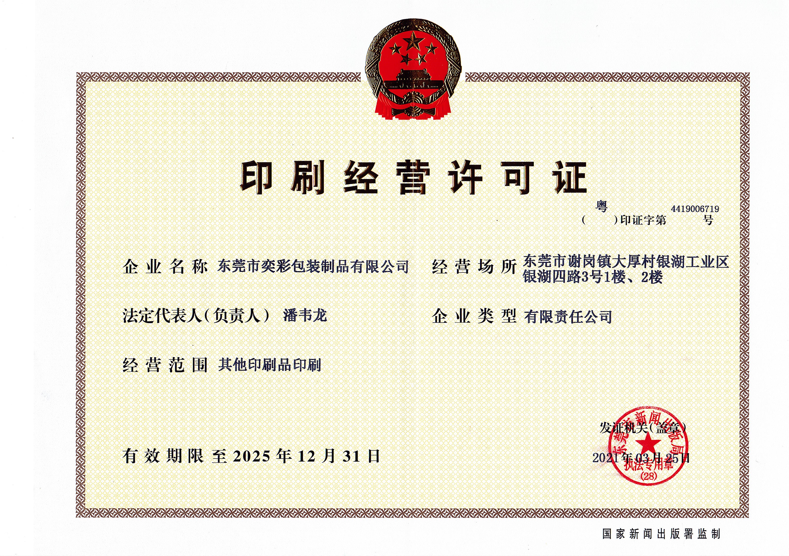 东莞市奕彩包装制品有限公司