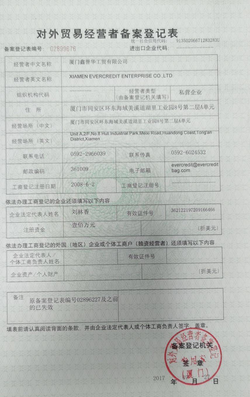 厦门鑫誉华工贸有限公司是一家专业的集箱包设计, 生产 ,销售于一体的生产厂家。公司位于厦门市西州路2041号-6 鑫华星工业园A栋三楼,交通方便,距离厦门高崎国际机场只有15-20分钟的车程。公司成立...
