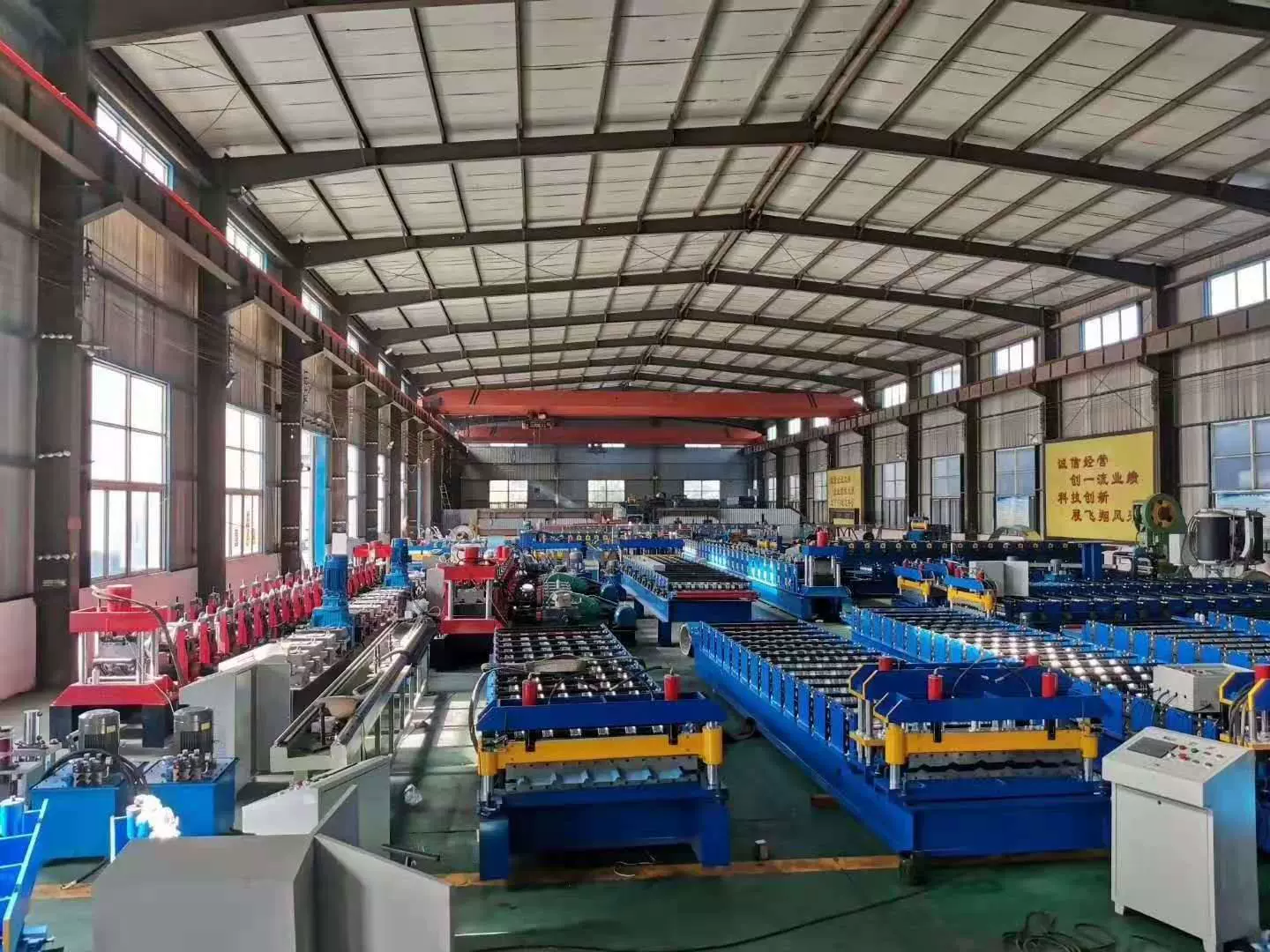河北飞翔压瓦机械制造有限公司。我公司生产彩钢压型设备、建筑墙钢结构用c/z钢设备、仿古琉璃瓦设备、楼房承重板生产线、复合板生产线、高速护栏设备等型号冷轧、冷弯成型全自动生产设备。