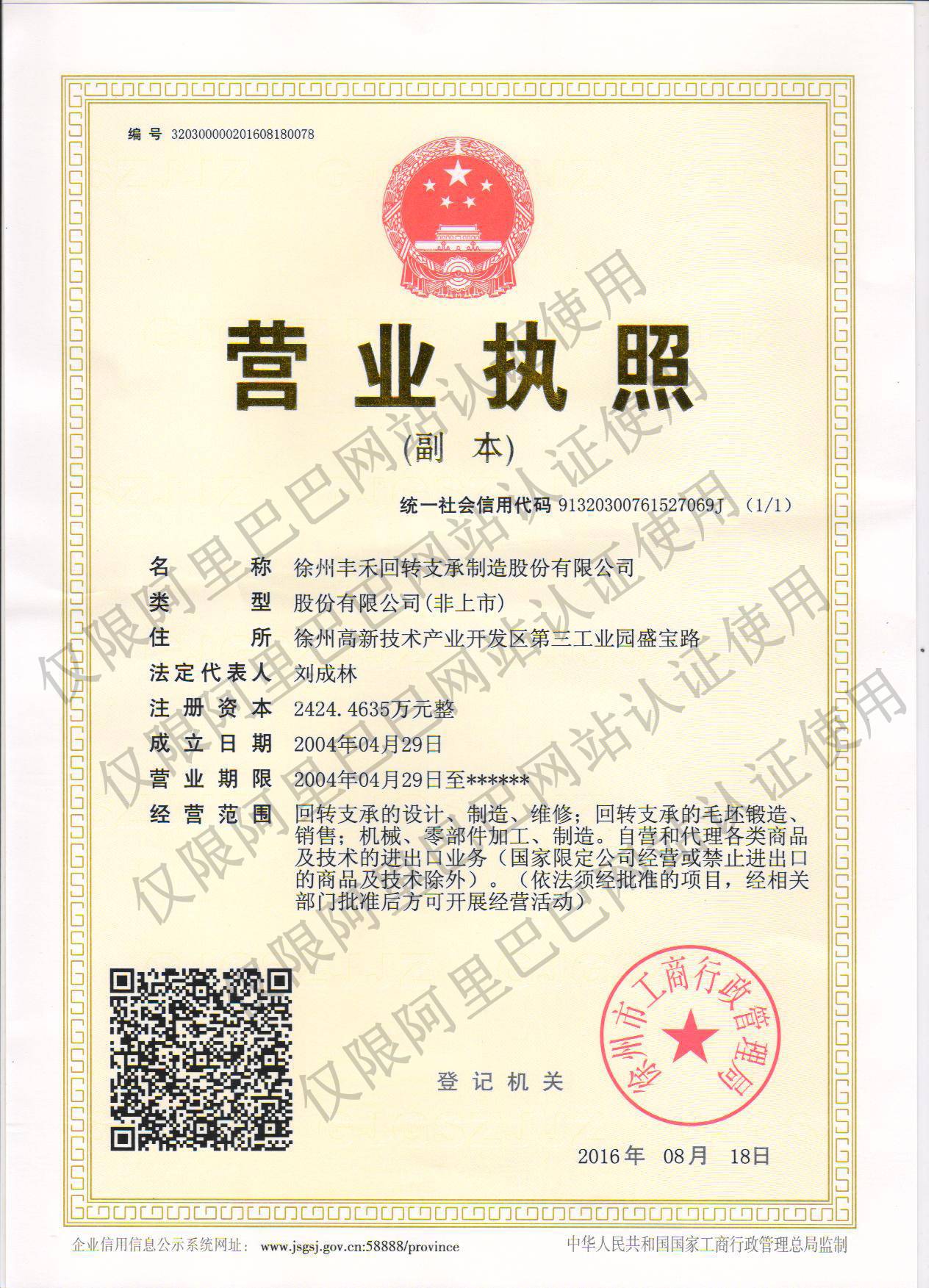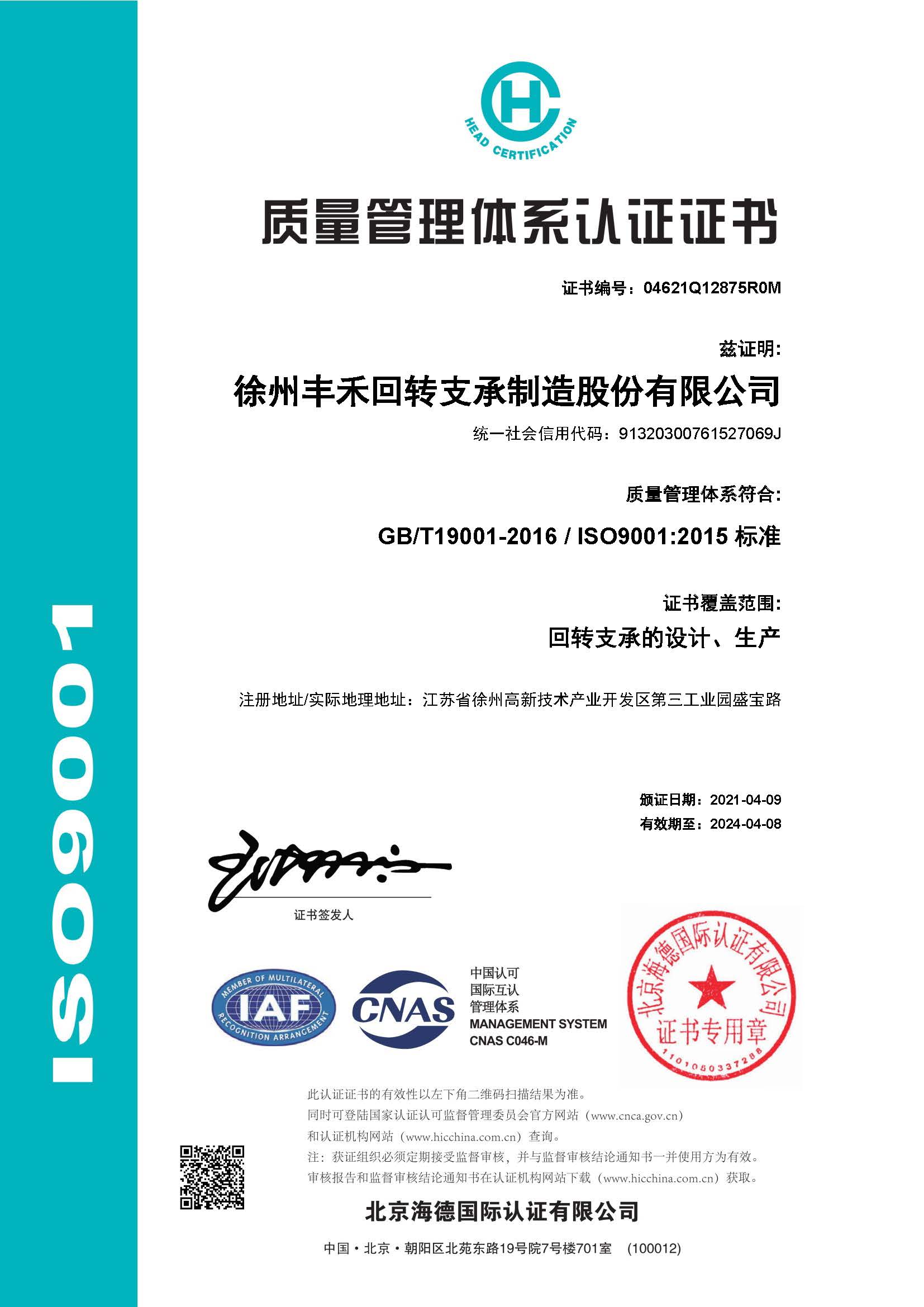 徐州丰禾回转支承制造股份有限公司
