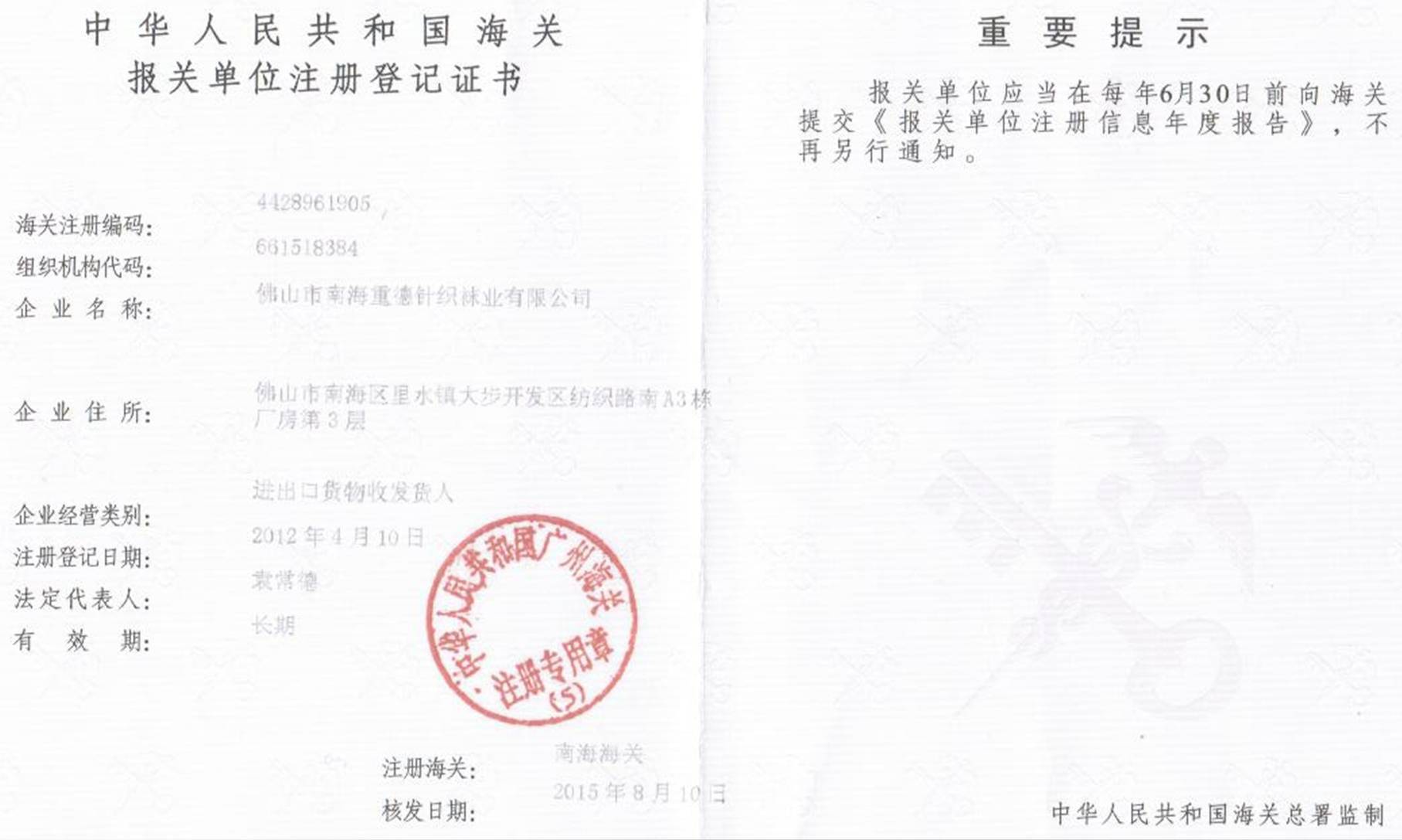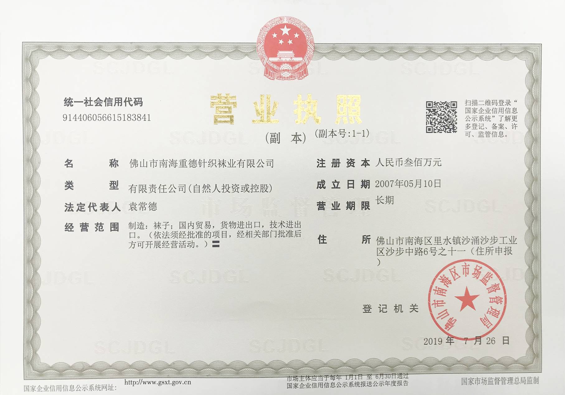佛山市南海重德针织袜业有限公司