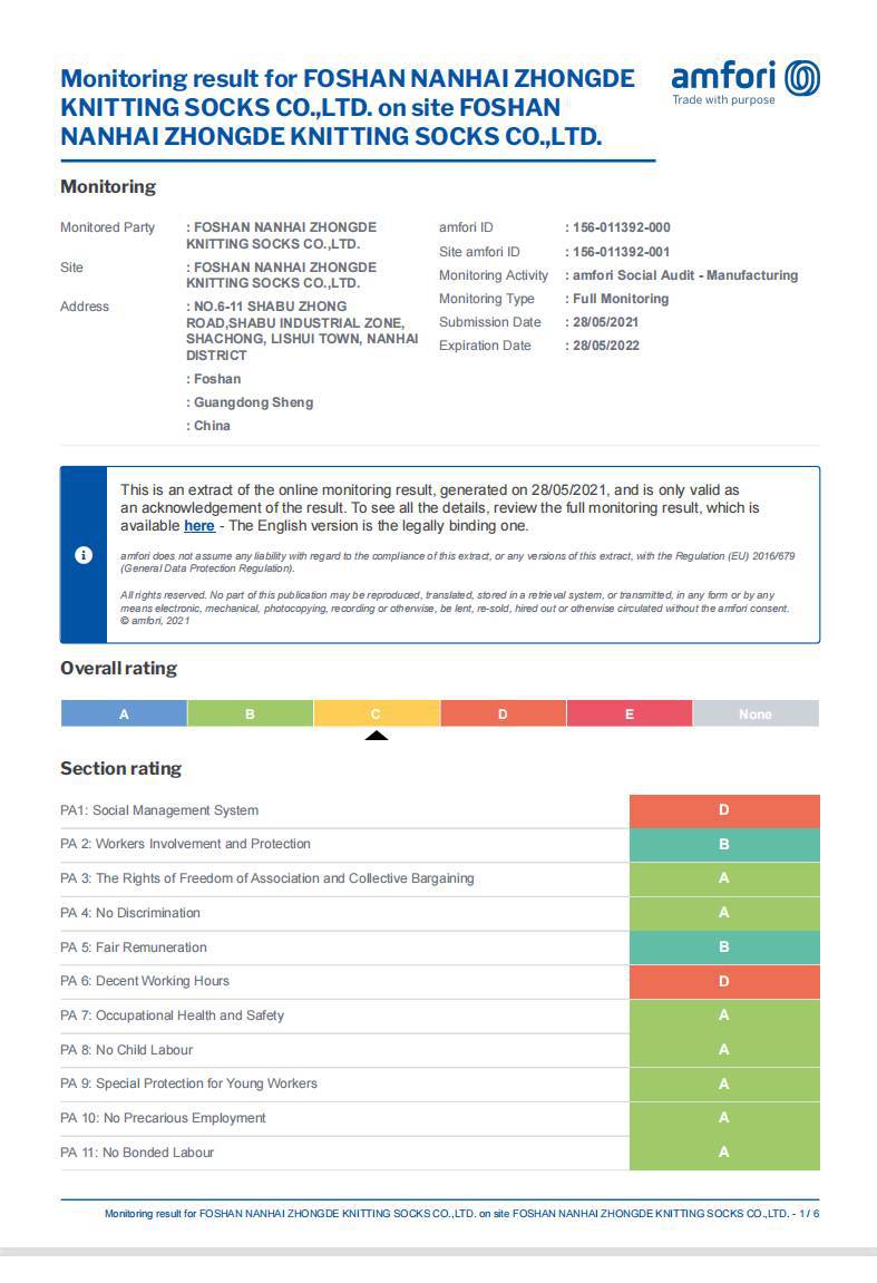 佛山市南海重德针织袜业有限公司是防滑袜、瑜伽袜、运动袜等各类袜子的生产工厂,拥有 ISO9001 质量管理体系,2021工厂已通过BSCI人权验厂,产品已申请 13 项专利证书,并获得广东省高...