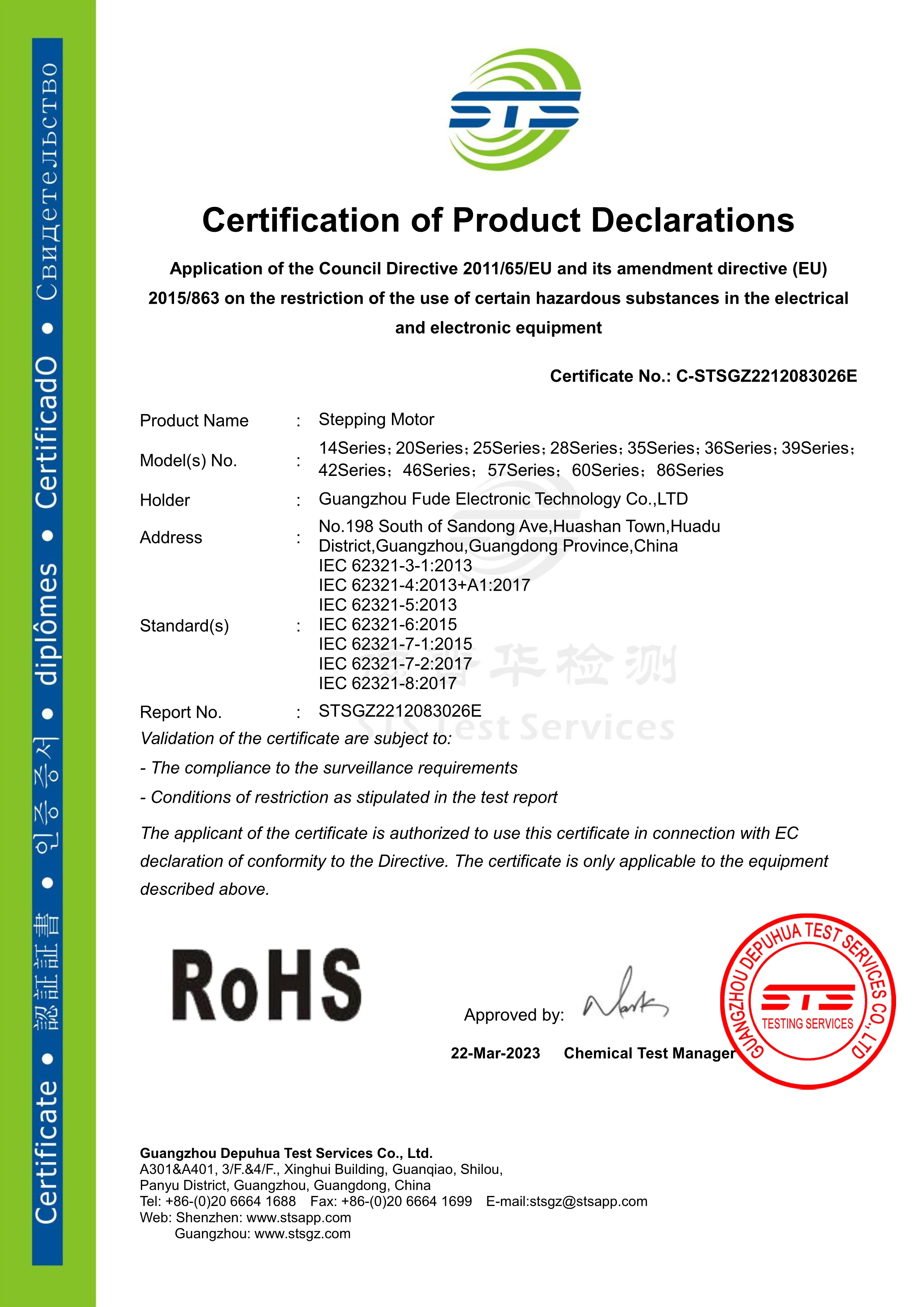 拥有RoHS认证