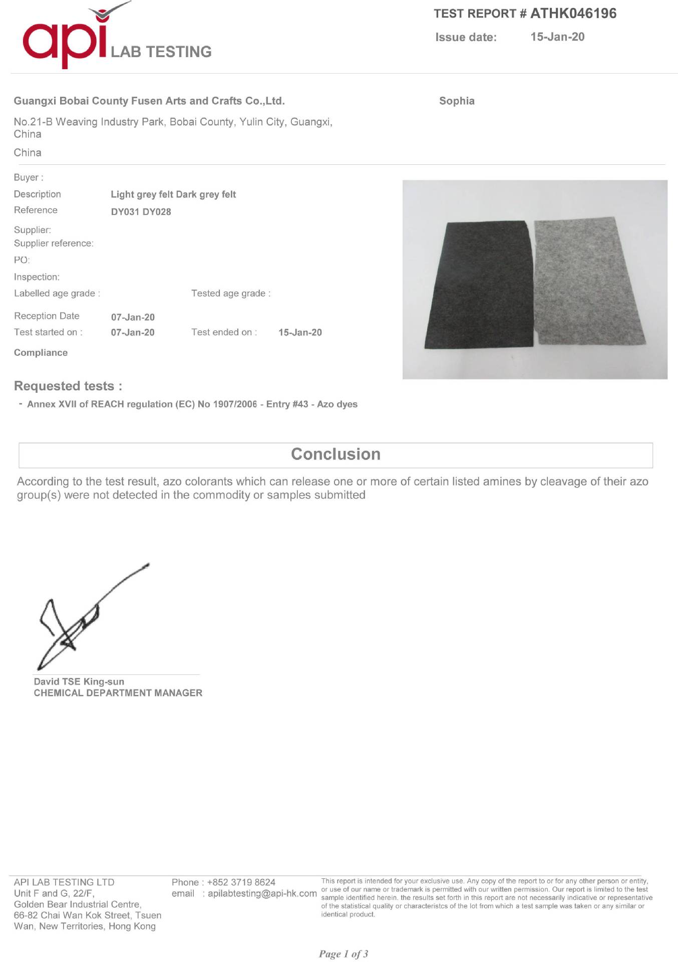 广西博白富森工艺品有限公司成立于2011年,座落于有着“中国编织工艺品之都”美称的广西博白,地处博白城东工业园21号,交通环境十分便利。 公司集专业开发、生产、销售于一体,涵盖了各种款式的毛毡工艺品、...