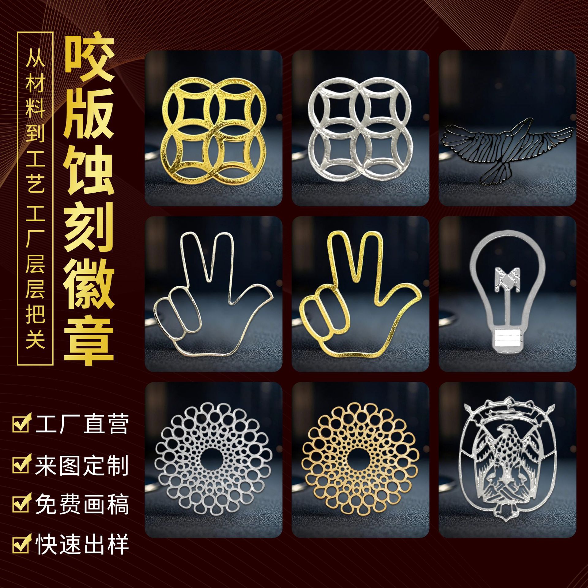 特殊工艺刻模 压铸 丝网印刷 电镀 包装 抛光 胶版印刷 凹版印刷 组装 织带 合成 装订 印刷