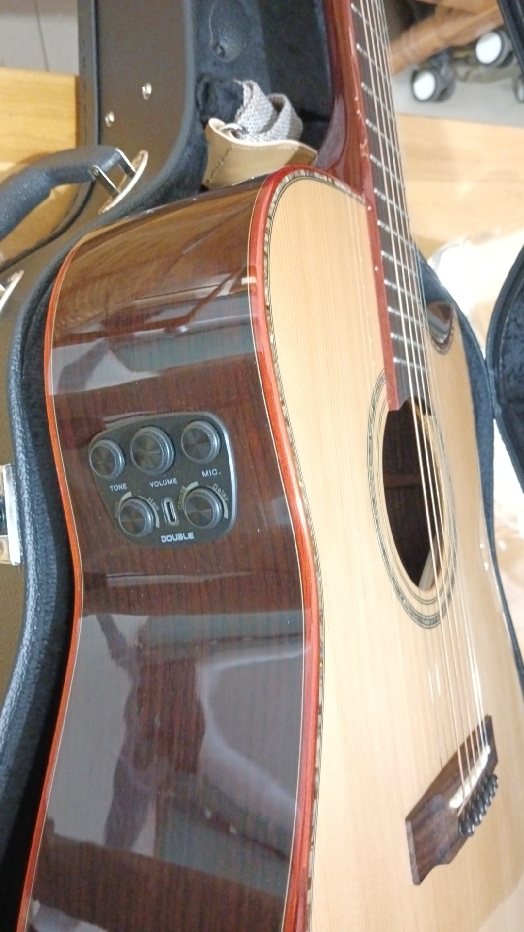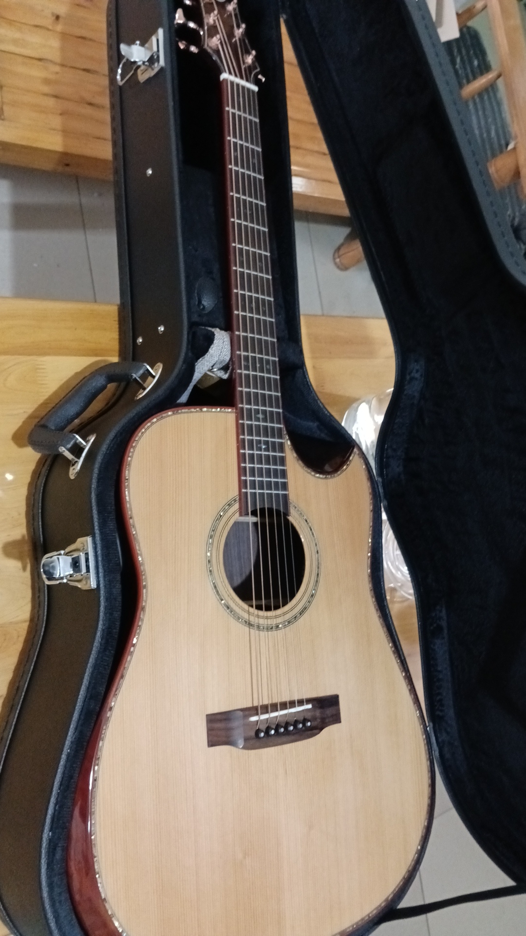 拿到后,就迫不急待的试了一下。音色纯净,高音透亮,低音无杂色。十分满意。这位厂家的吉它做得很好!2024.10.4