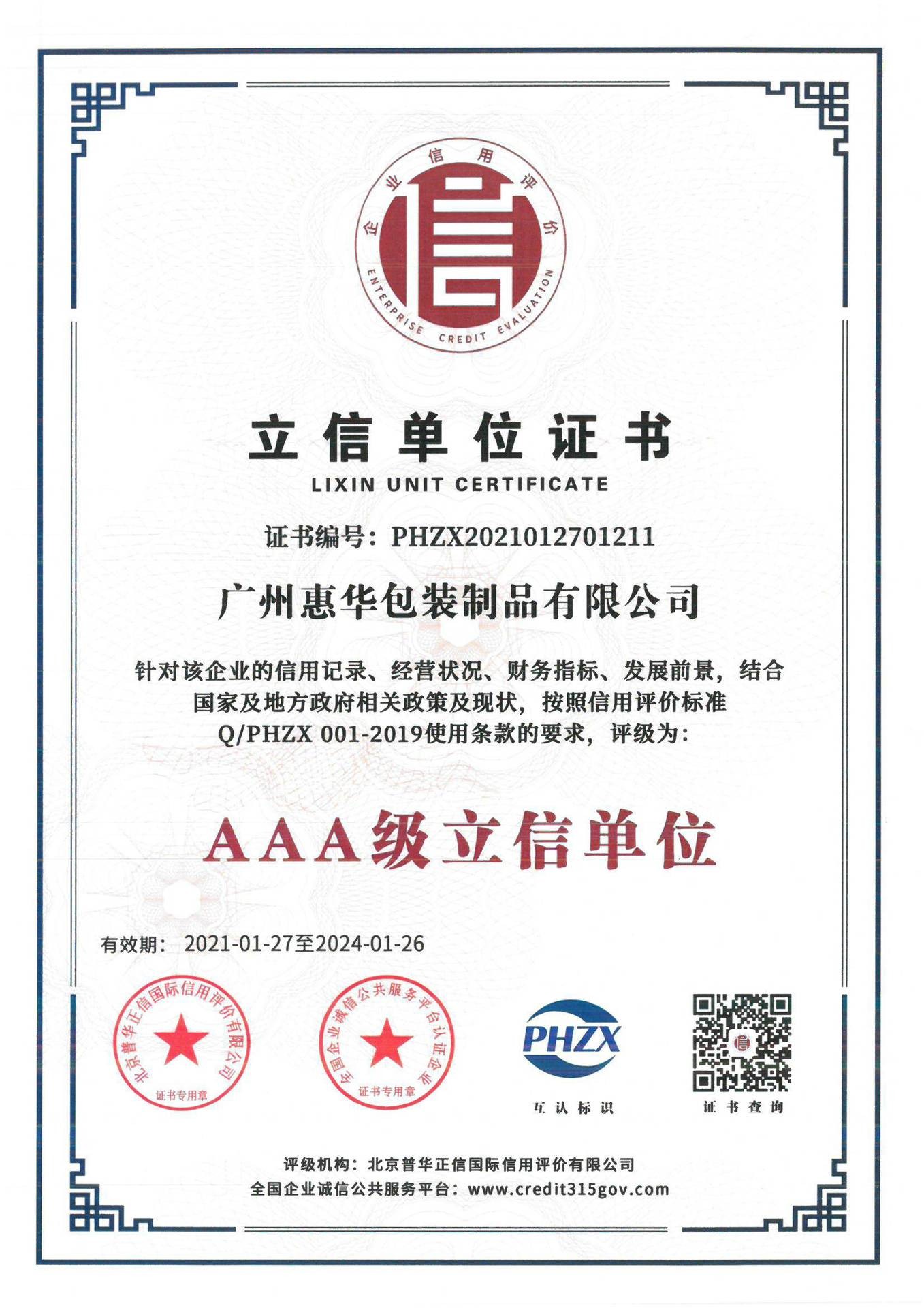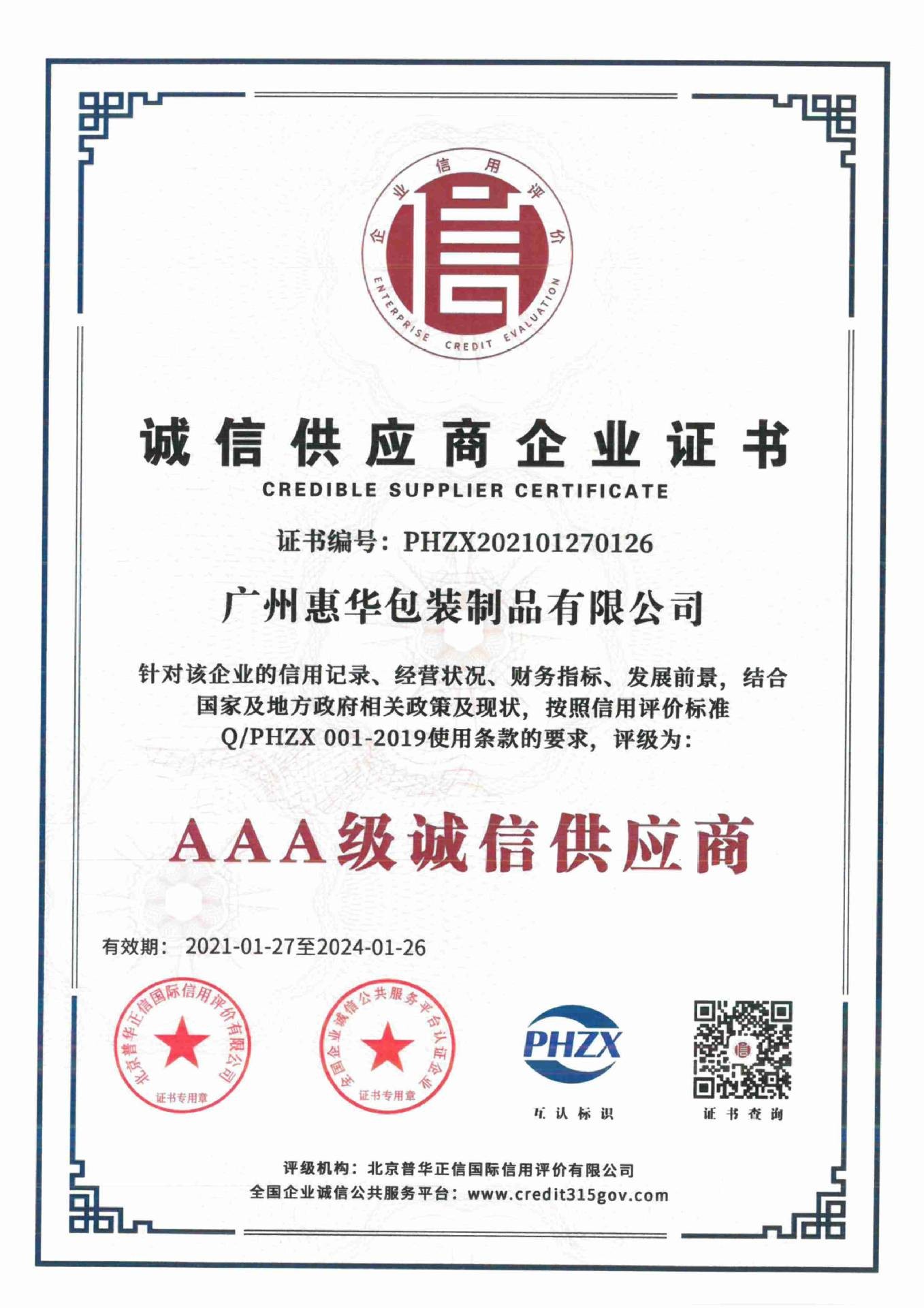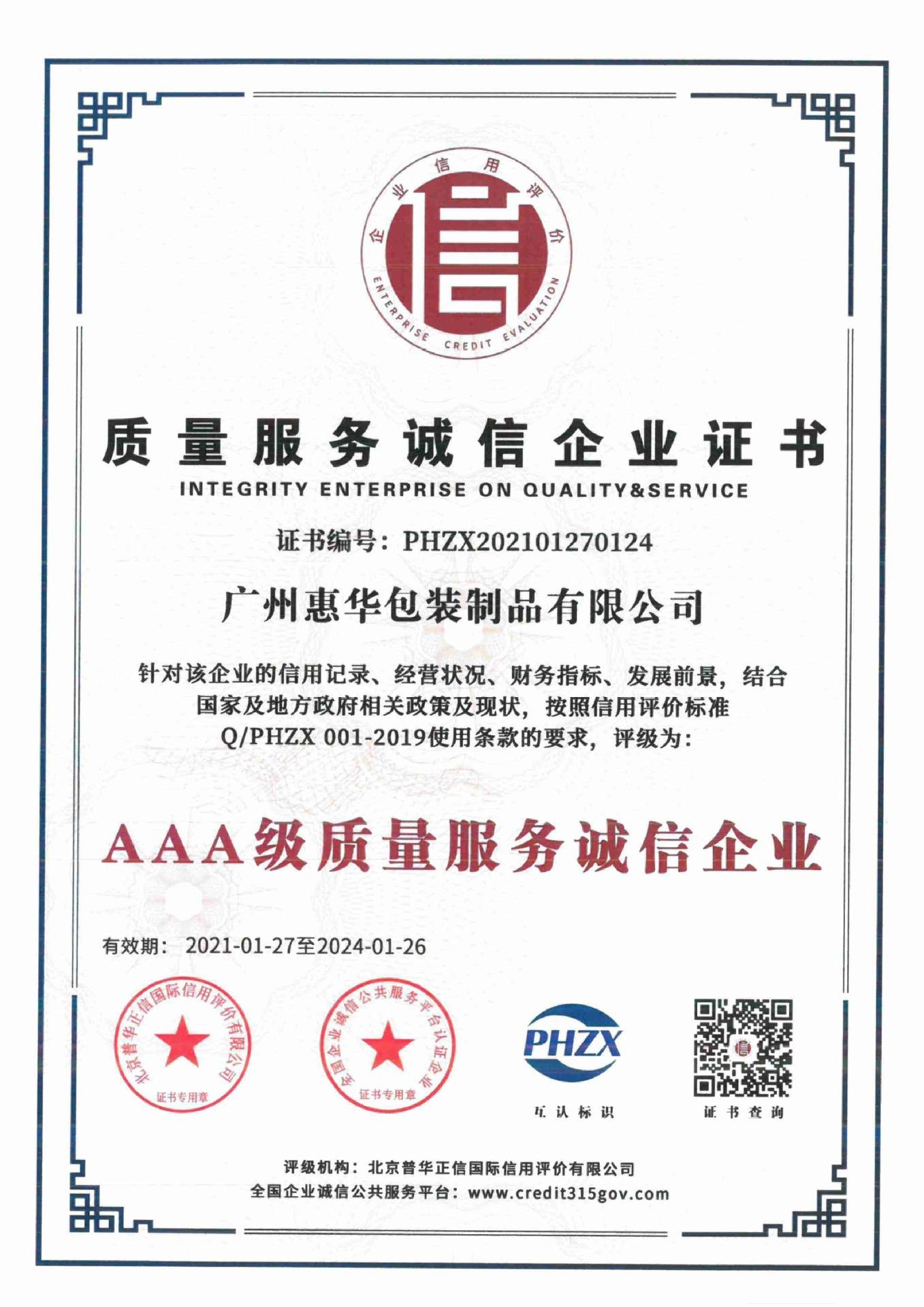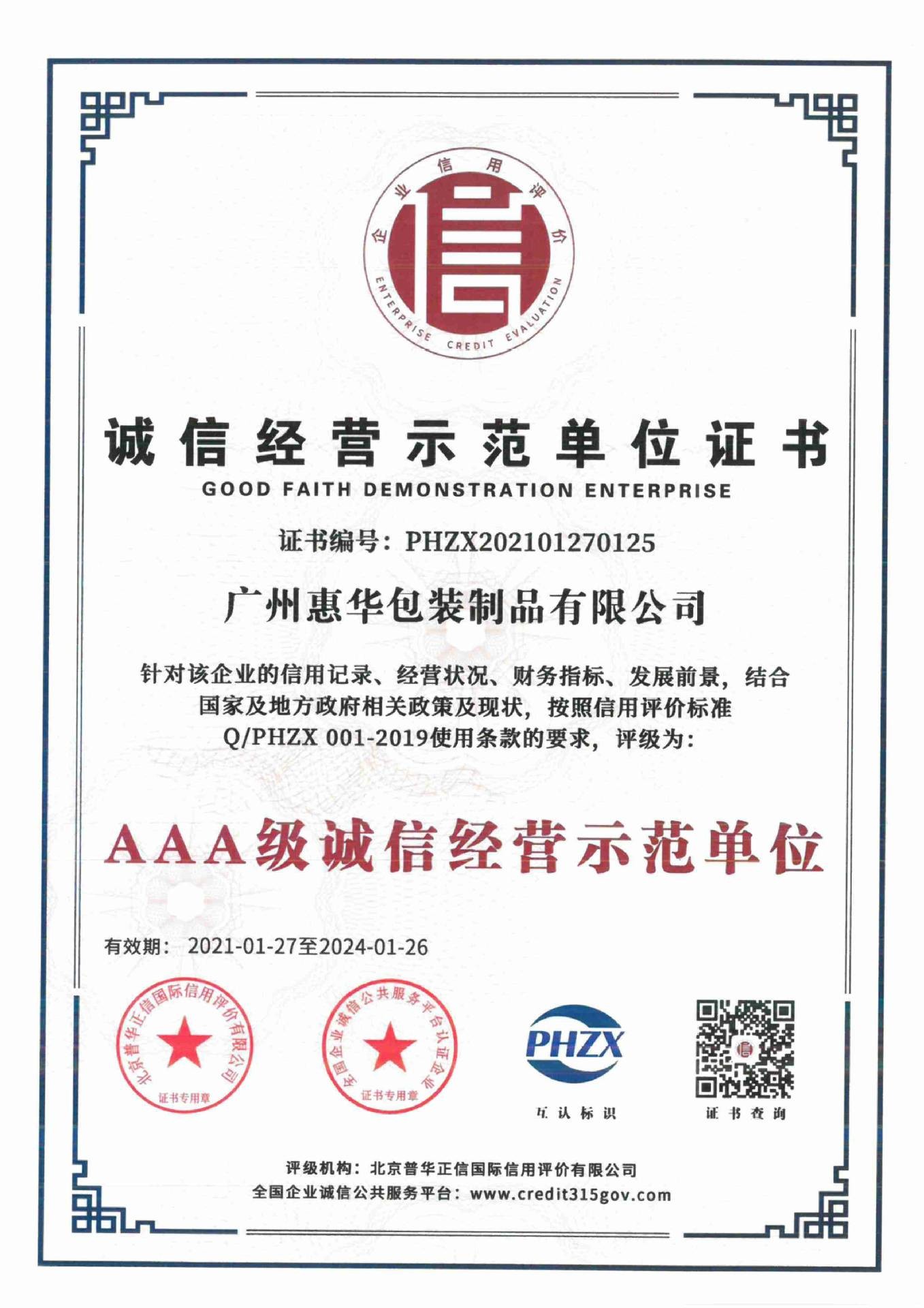 AA诚信等级