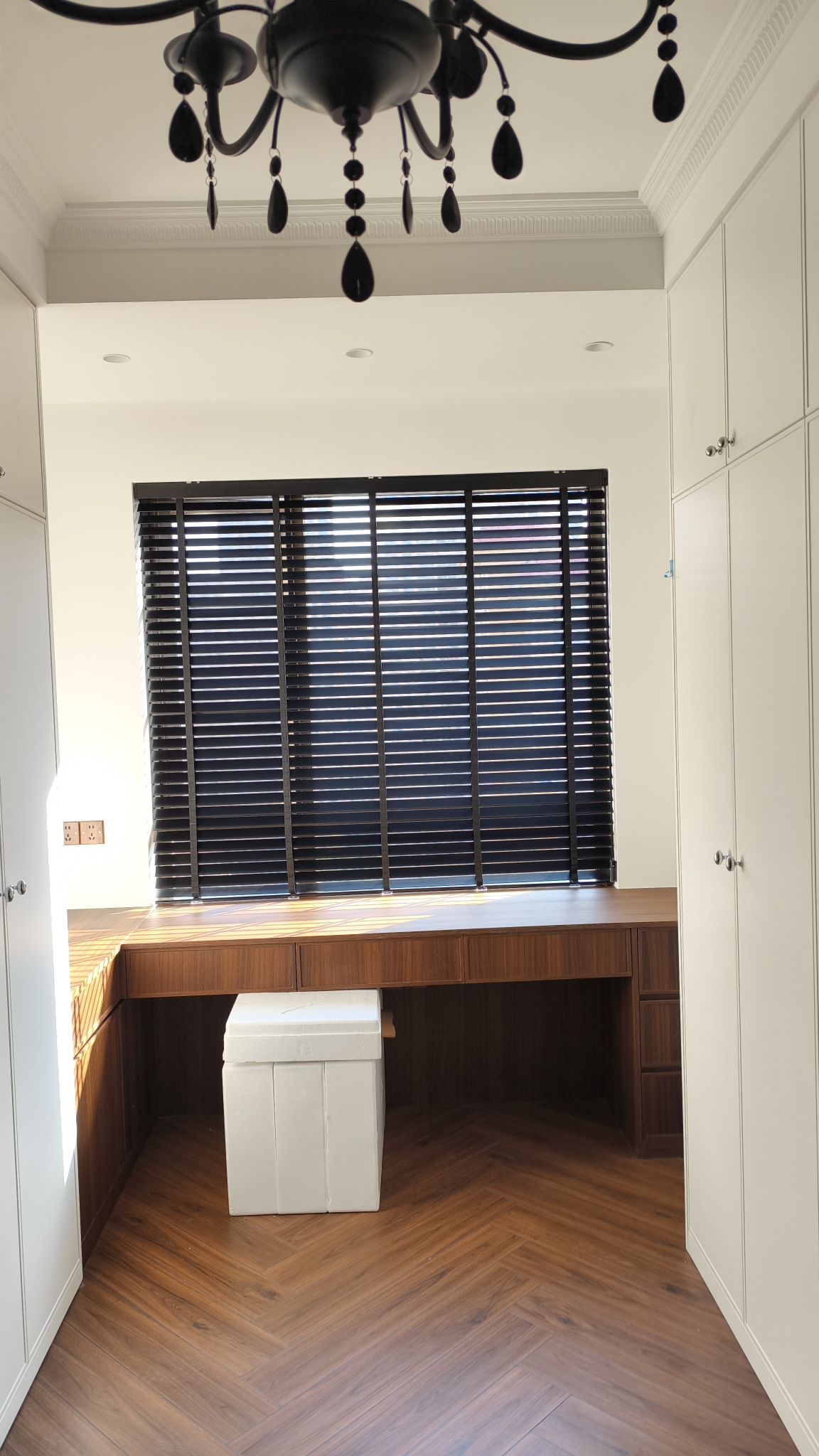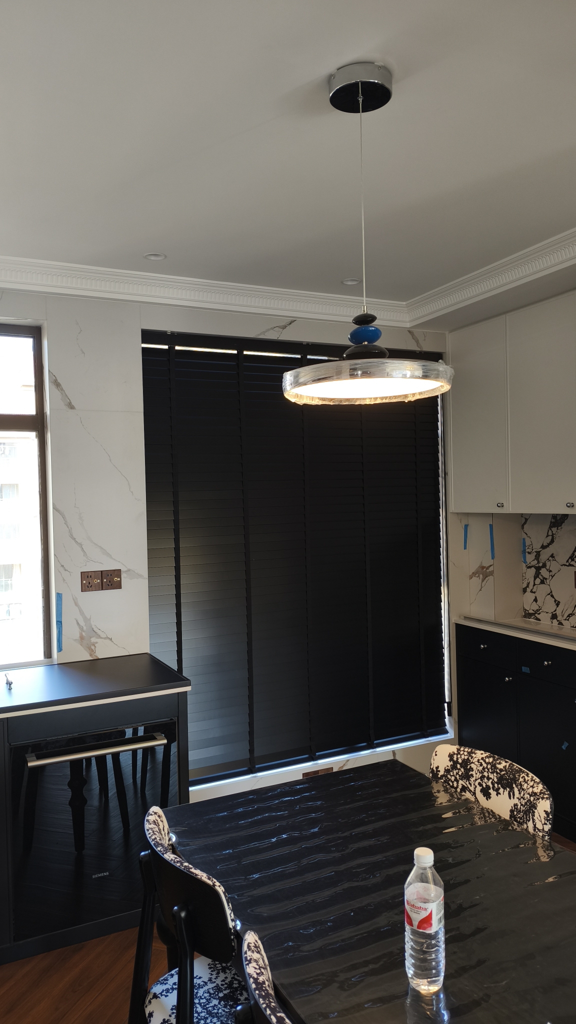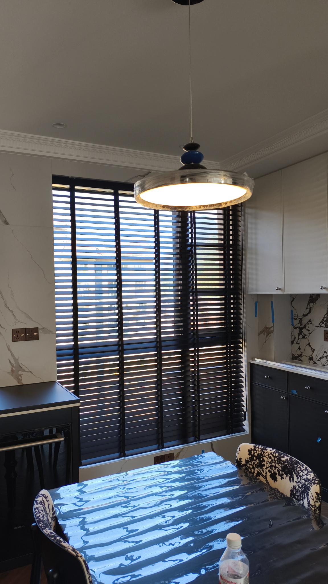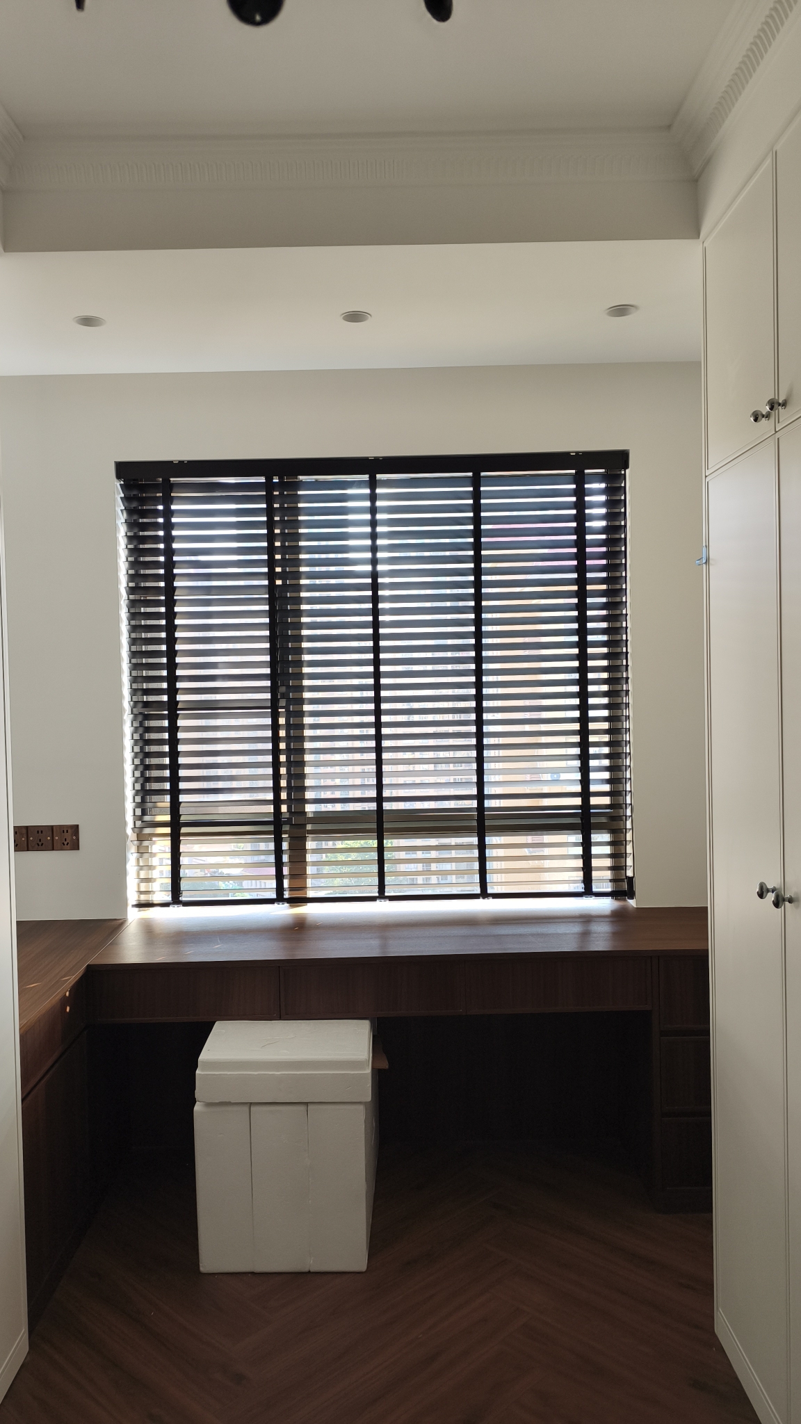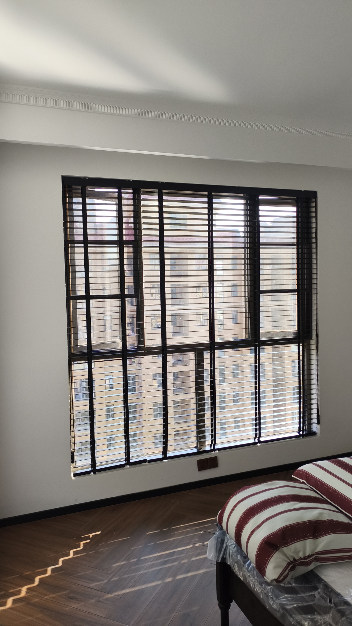 提前联系客服邮寄了小样,挑了黑色的木百叶。服务态度好,在客服帮助下,自己完成了量尺。客服还帮联系了安装,落地效果很满意,没什么味道,拉伸质量可靠,是想要的效果2024.12.24