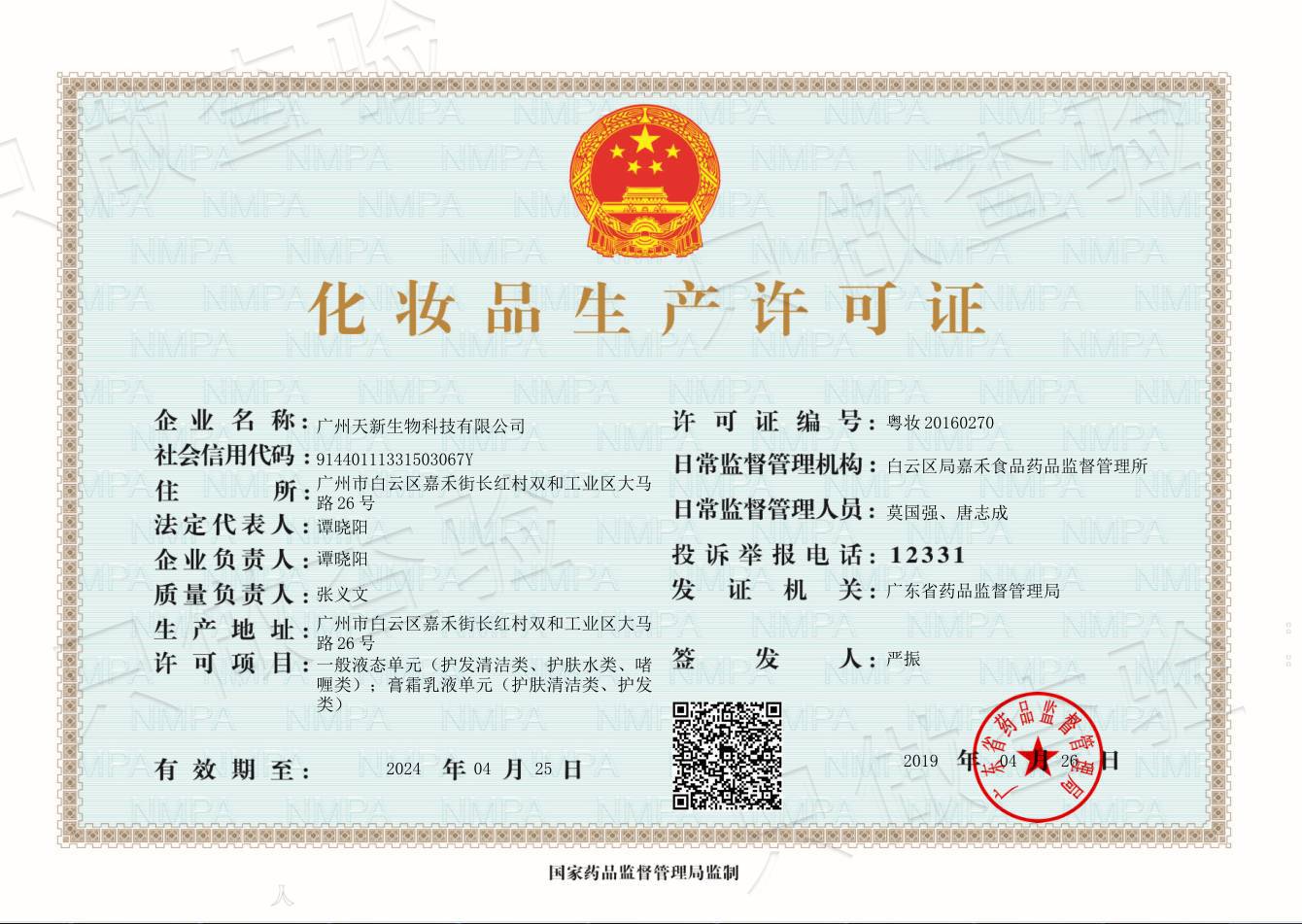 广州天新生物科技有限公司是一家集研发、生产、培训、售后服务为一体的高科技化妆品企业,专注于化妆品品牌及半成品OEM/ODM加工,公司拥有1万多平方标准GMP厂房,全新高科技机械设备和强大的具有数十年研...
