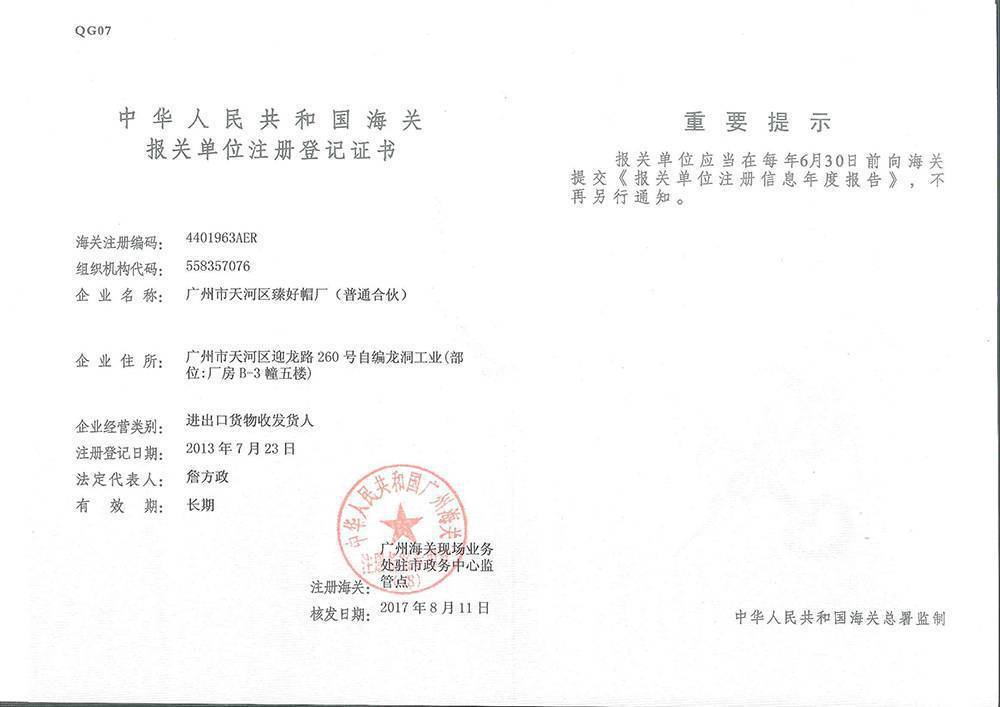 广州市天河区臻好帽厂(普通合伙)
